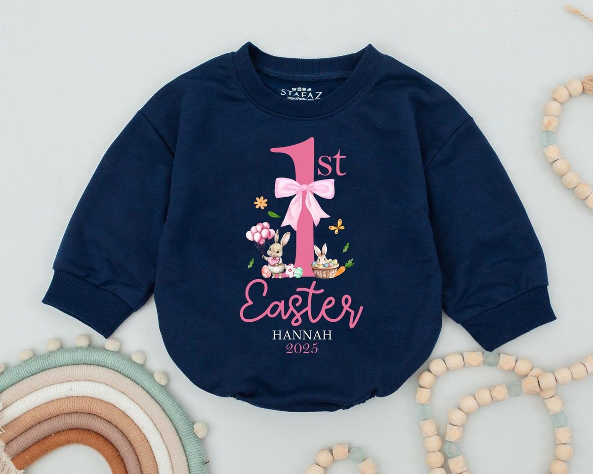 Personalized Name Easter Bodysuit For Baby Custom Easter Baby Boy Girl Outfit First Easter Baby Romp