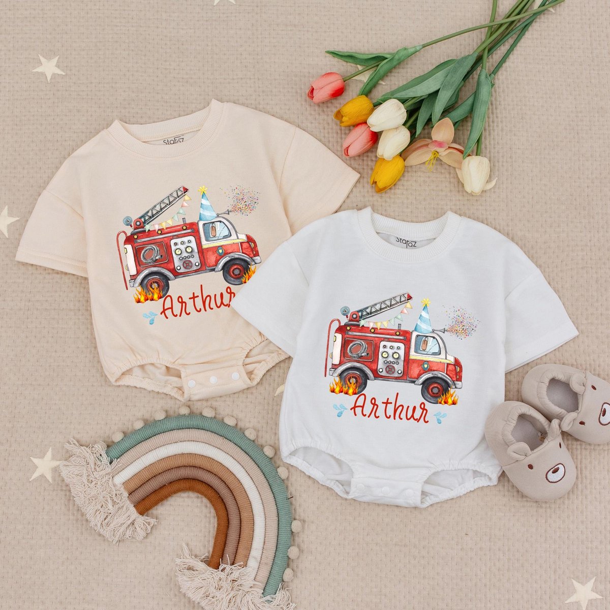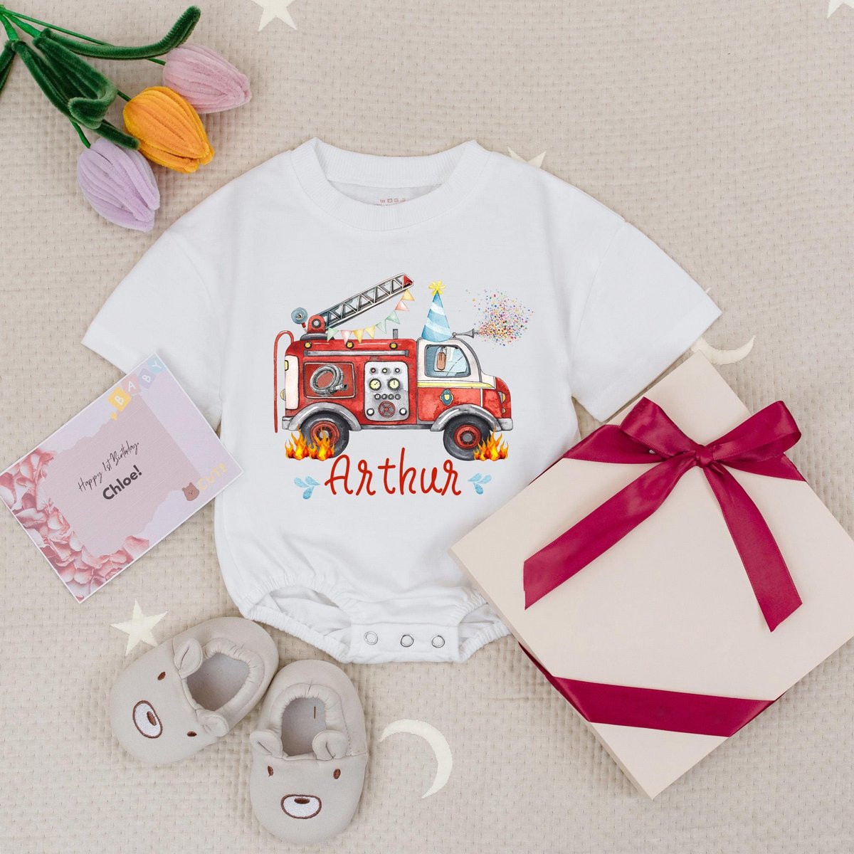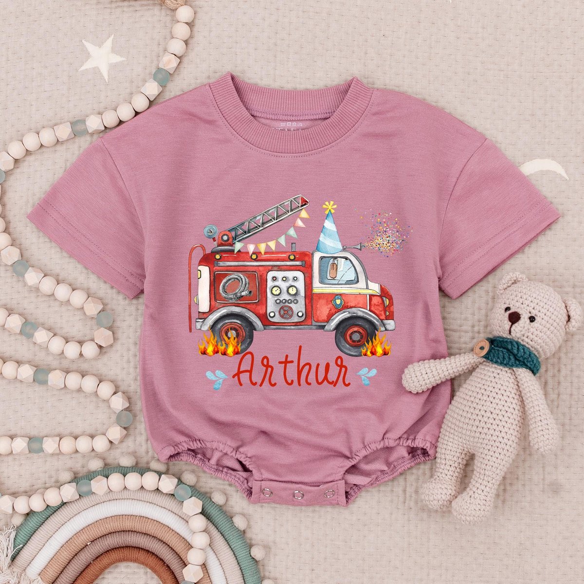 Personalized Name Fire Truck Birthday Baby Romper Kids Fire Truck Birthday Babysuit Fire Truck Birth