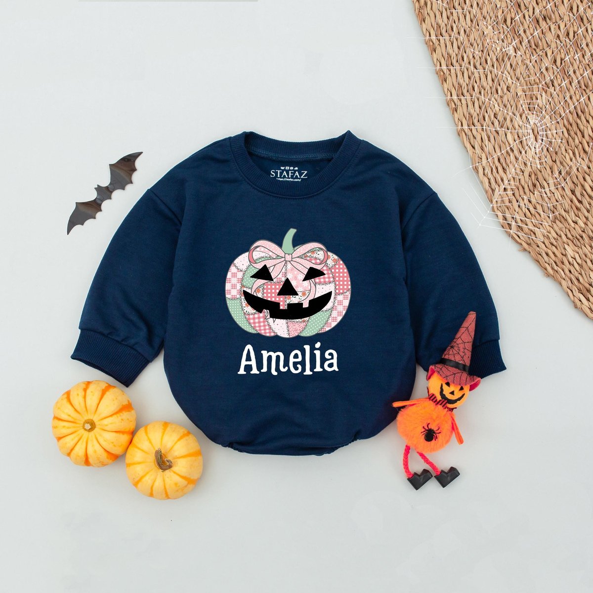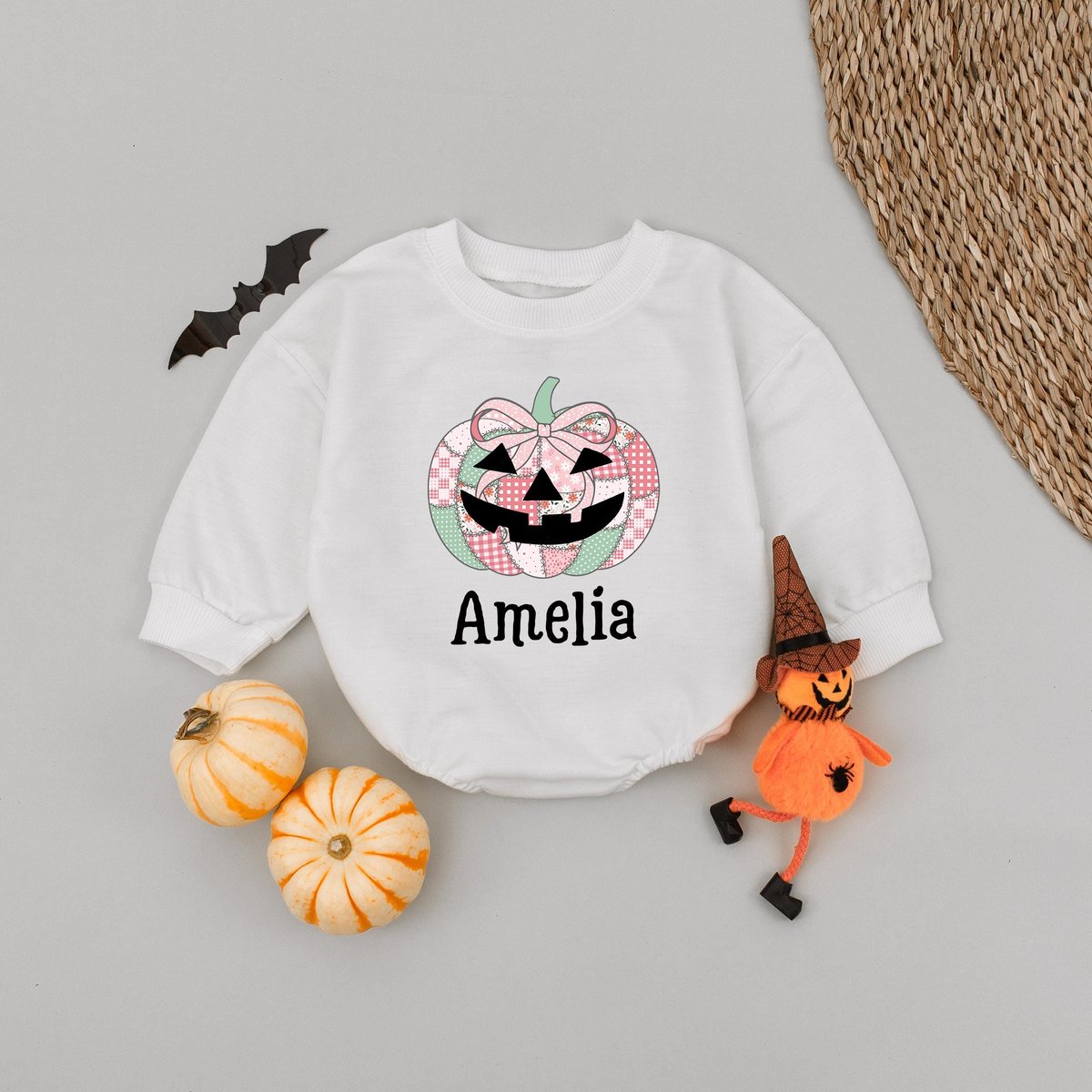 Personalized Name Flower Pumpkin Baby Romper Girly Autumn Baby Romper First Halloween Spooky Season