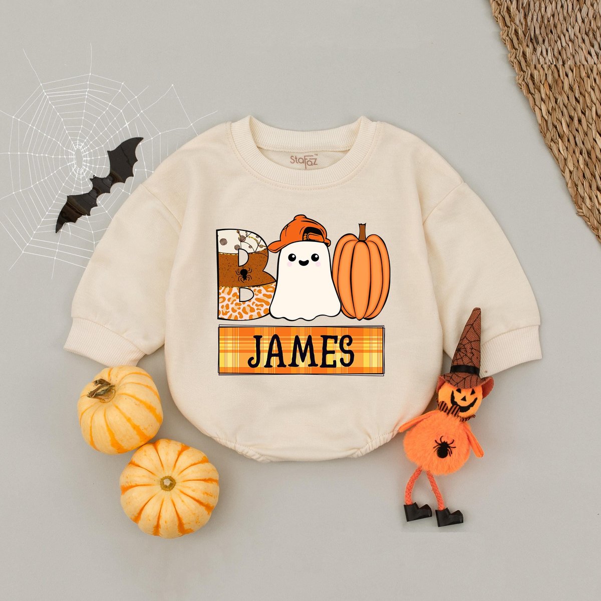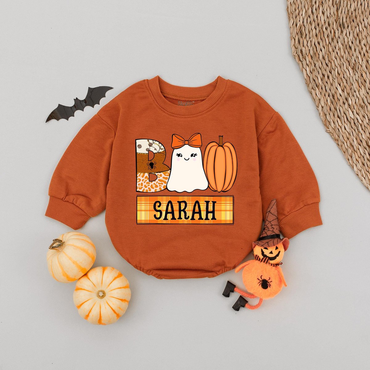 Personalized Name Ghost Halloween Kids Bubble Romper Halloween Ghost Babysuit Girl Boy Ghost Tee Ret