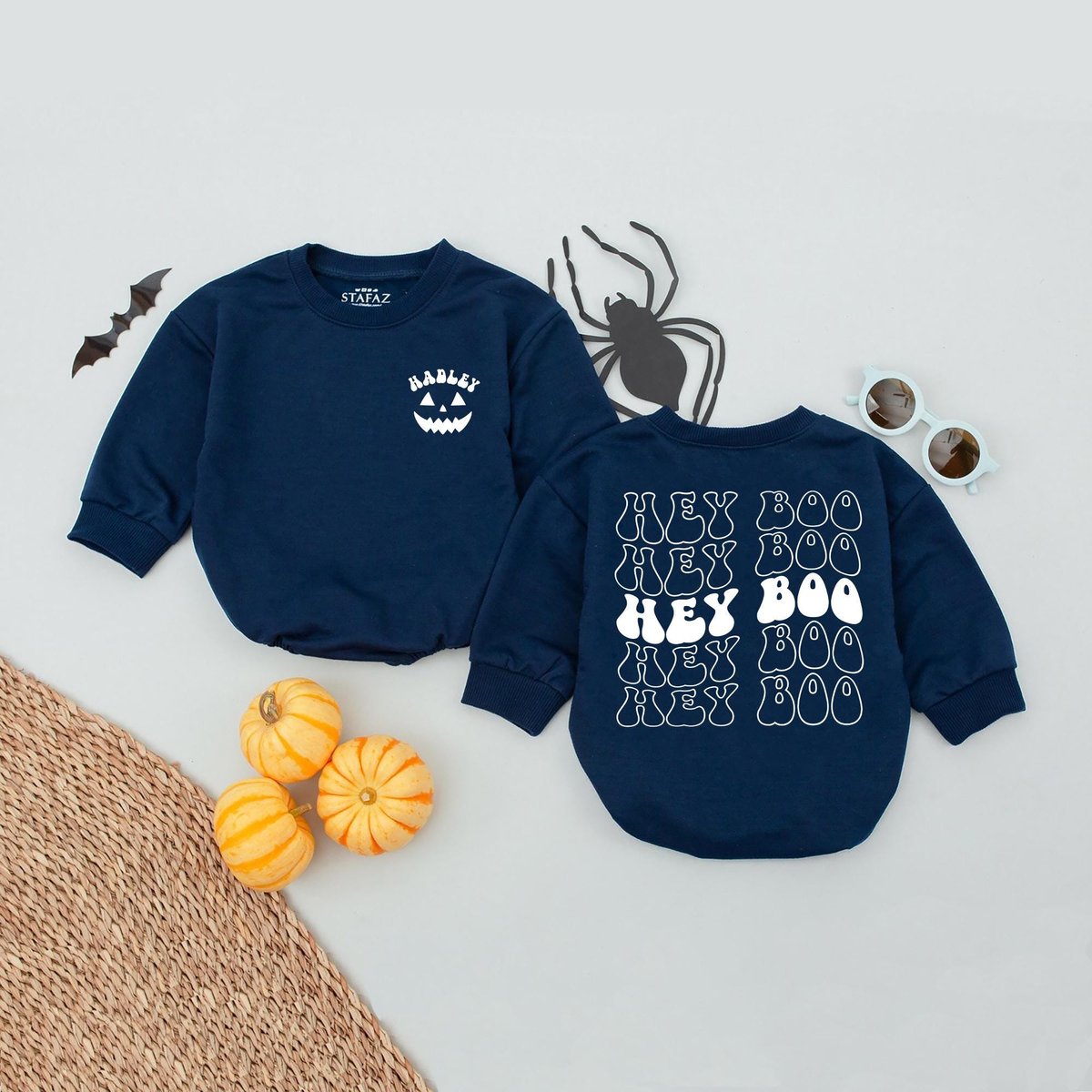 Personalized Name Hey Boo Baby Romper Funny Halloween Shirt for Kids Halloween Boo Kid First Thanksg
