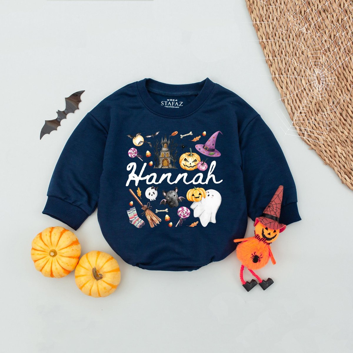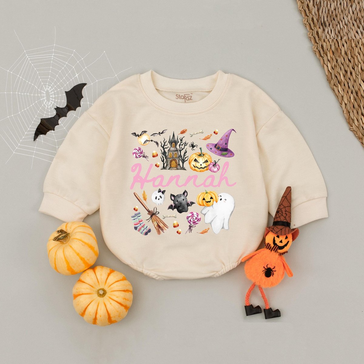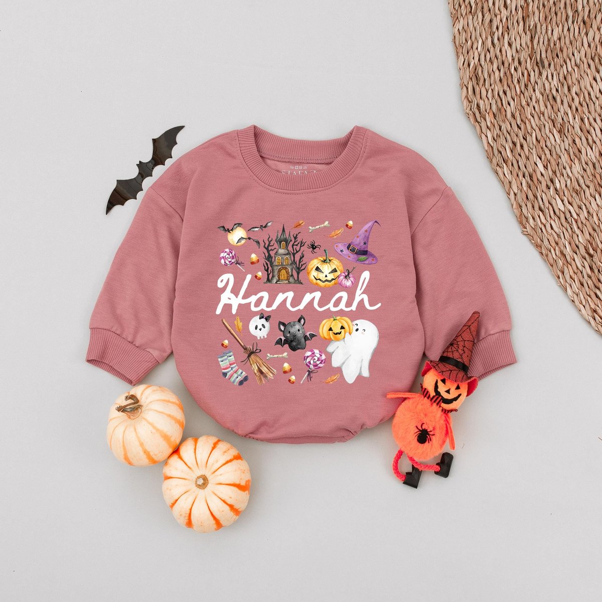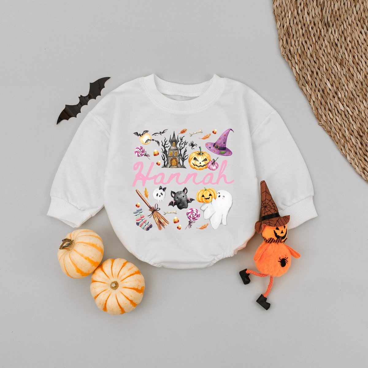 Personalized Name Kids Halloween Bubble Romper Gift For Girl Pink Cute Custom Girl Halloween Shirt W