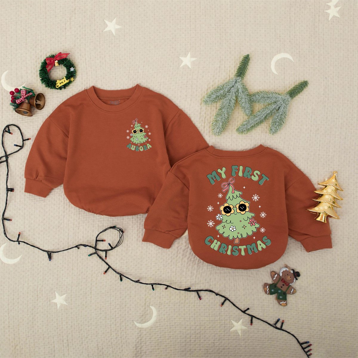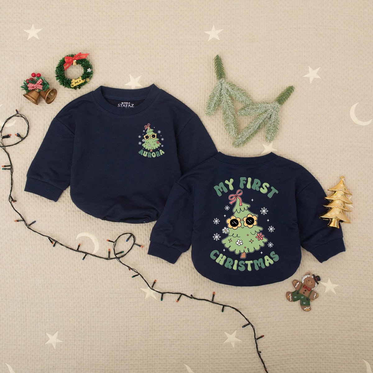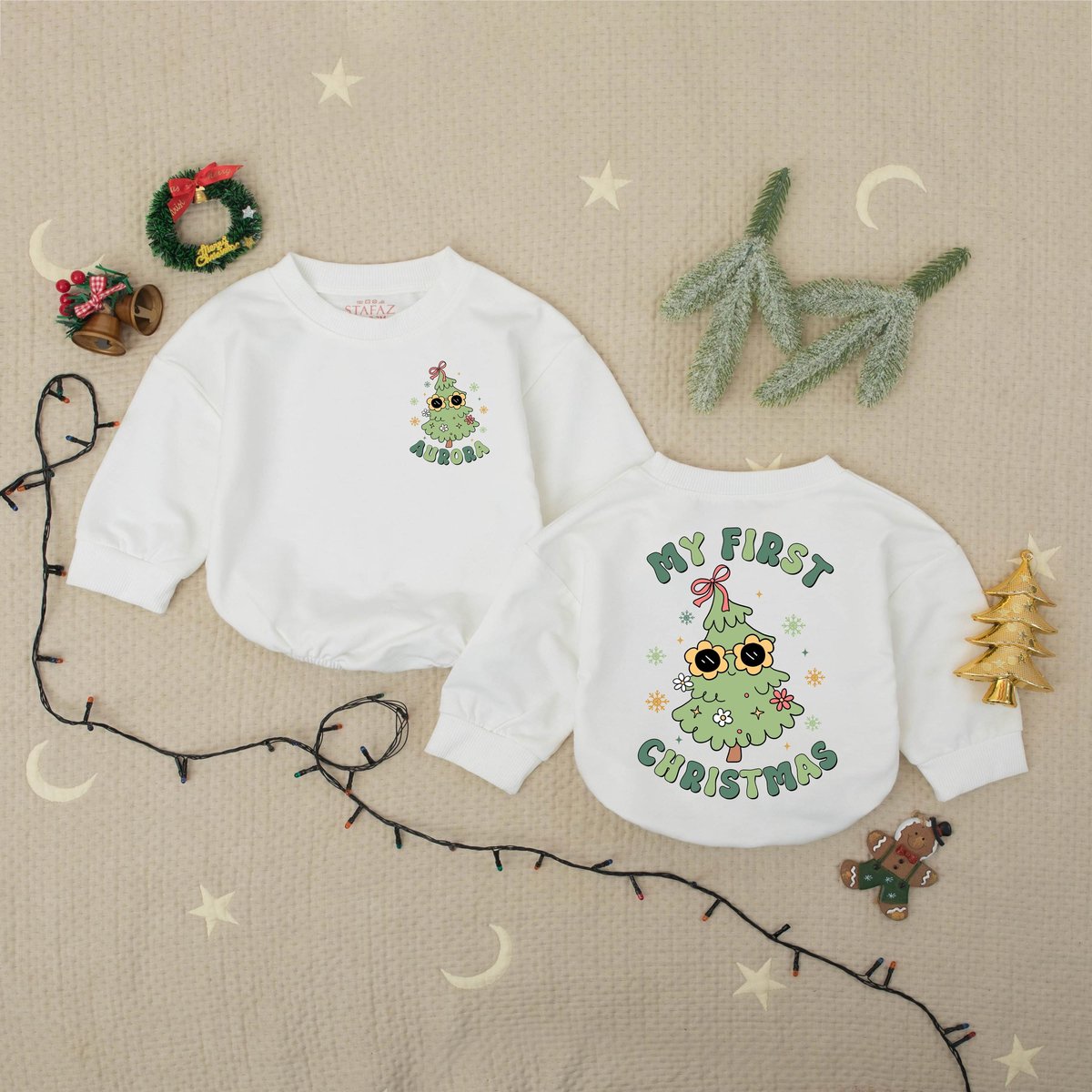 Personalized Name My First Christmas Baby Romper Sweatshirt Snowman Christmas Babysuit Cute Christma