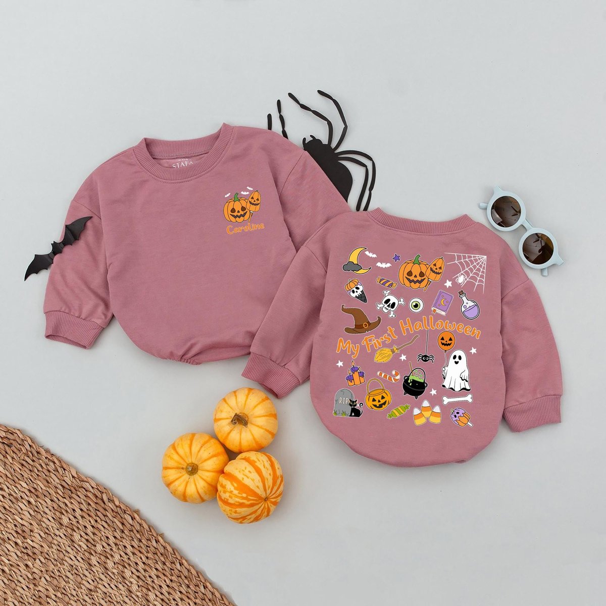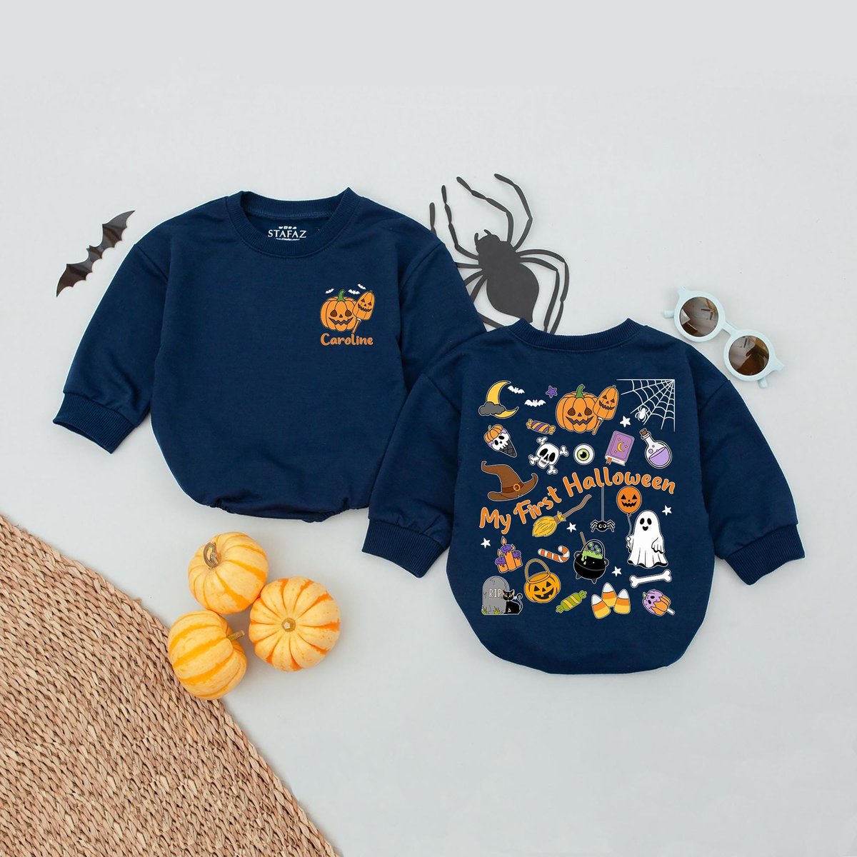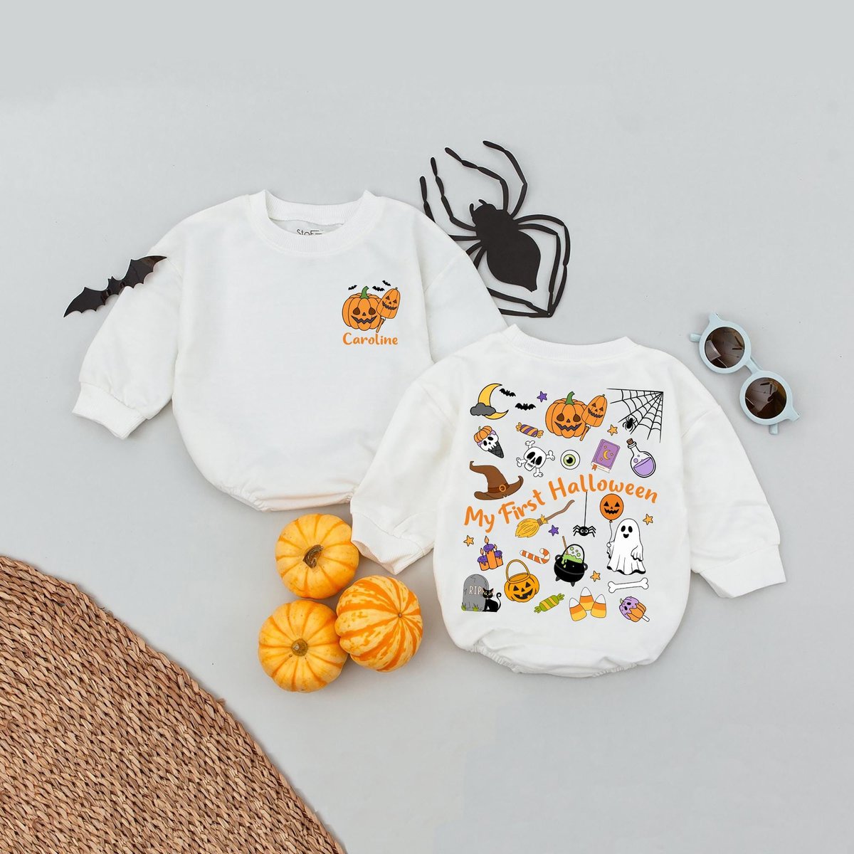 Personalized Name My First Halloween Season Baby Romper One Year Halloween Kids Name Bubble Romper C
