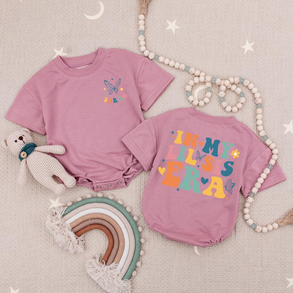 Personalized Name Retro Lil Sis Baby Romper In My Lil Sis Era Baby Babysuit Cute Retro Sister Bodysu