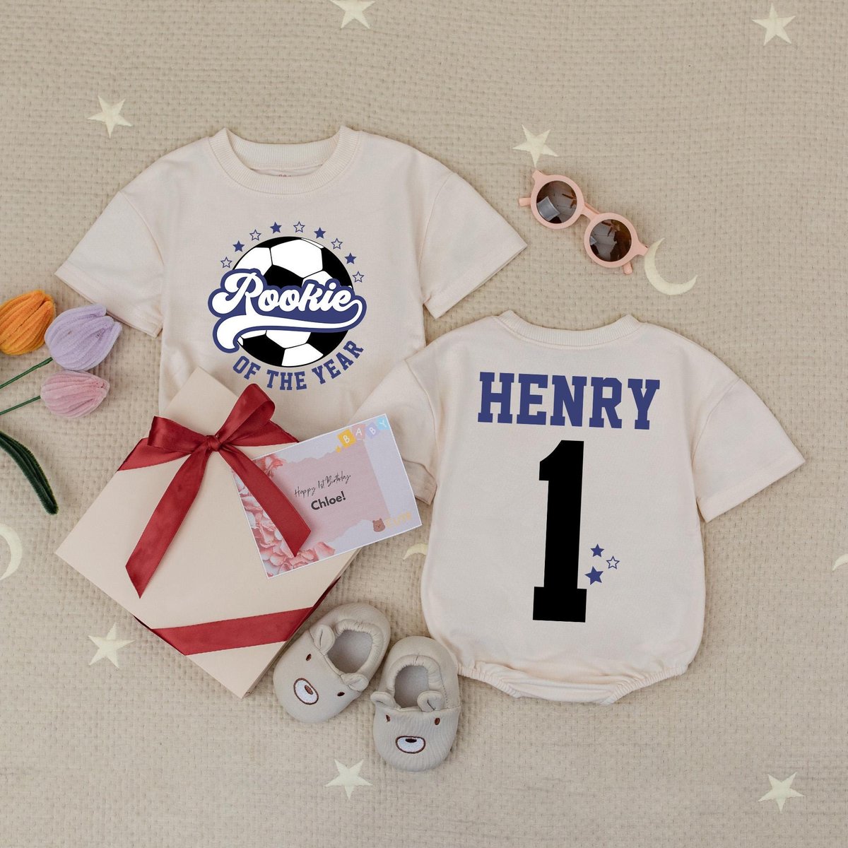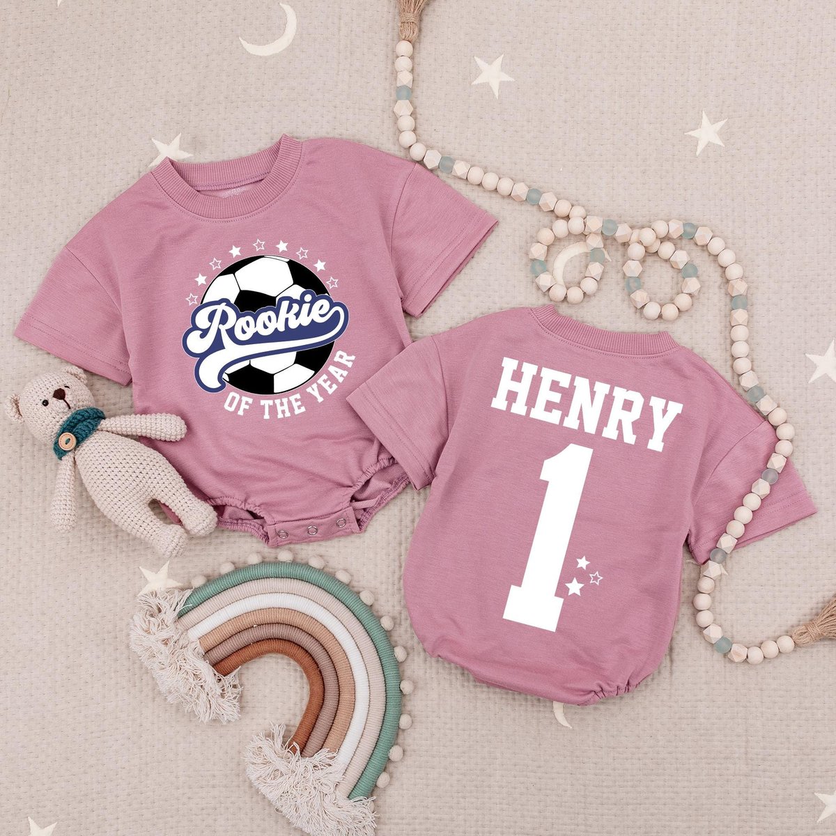 Personalized Name Rookie Of The Year Soccer Bubble Romper Custom Soccer Kids Shirts 1st Birthday Soc