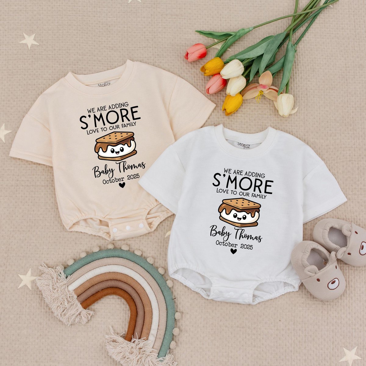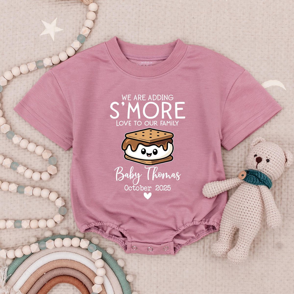 Personalized Name S’more Pregnancy Reveal Baby Romper Adding Smore Love Babysuit Sibling Pregnancy