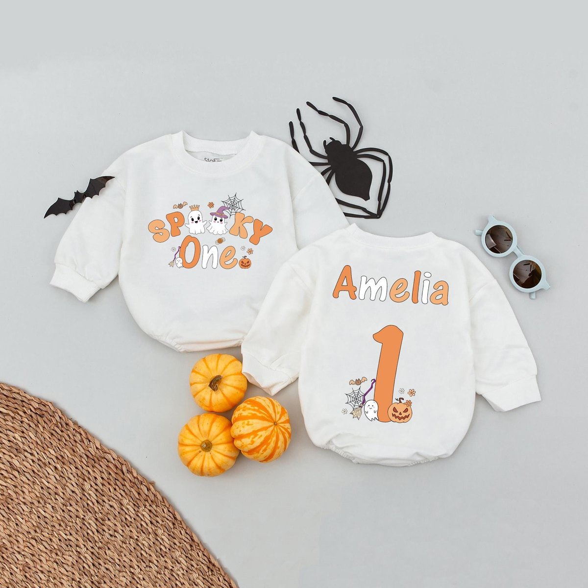 Personalized Name Spooky One Baby Romper My First Halloween Baby Boo Romper Outfits Spooky Season Ba
