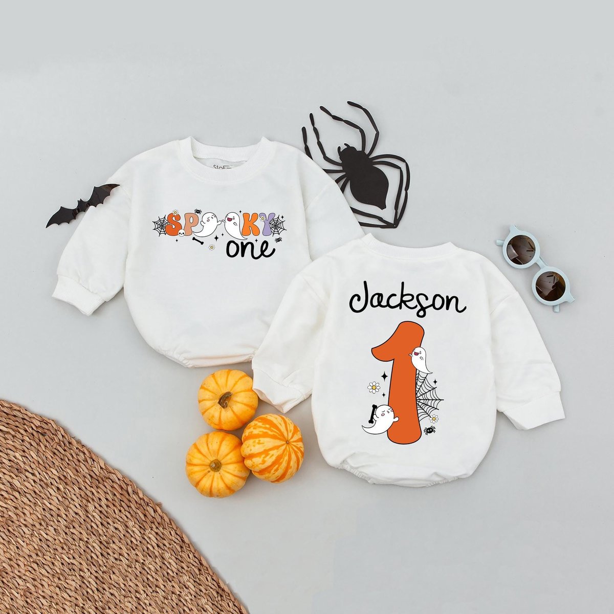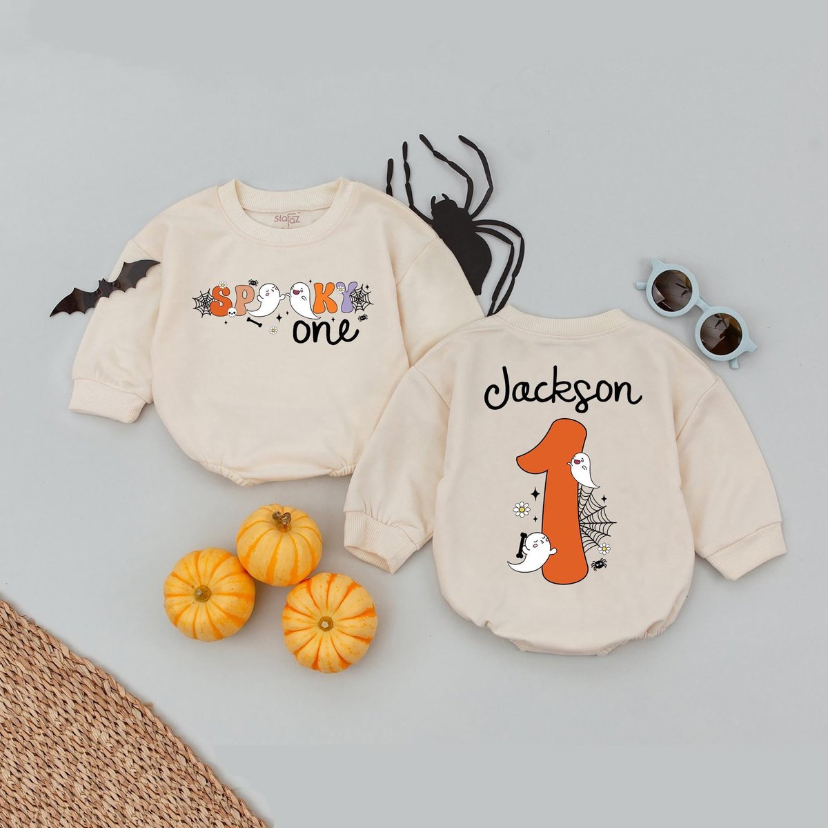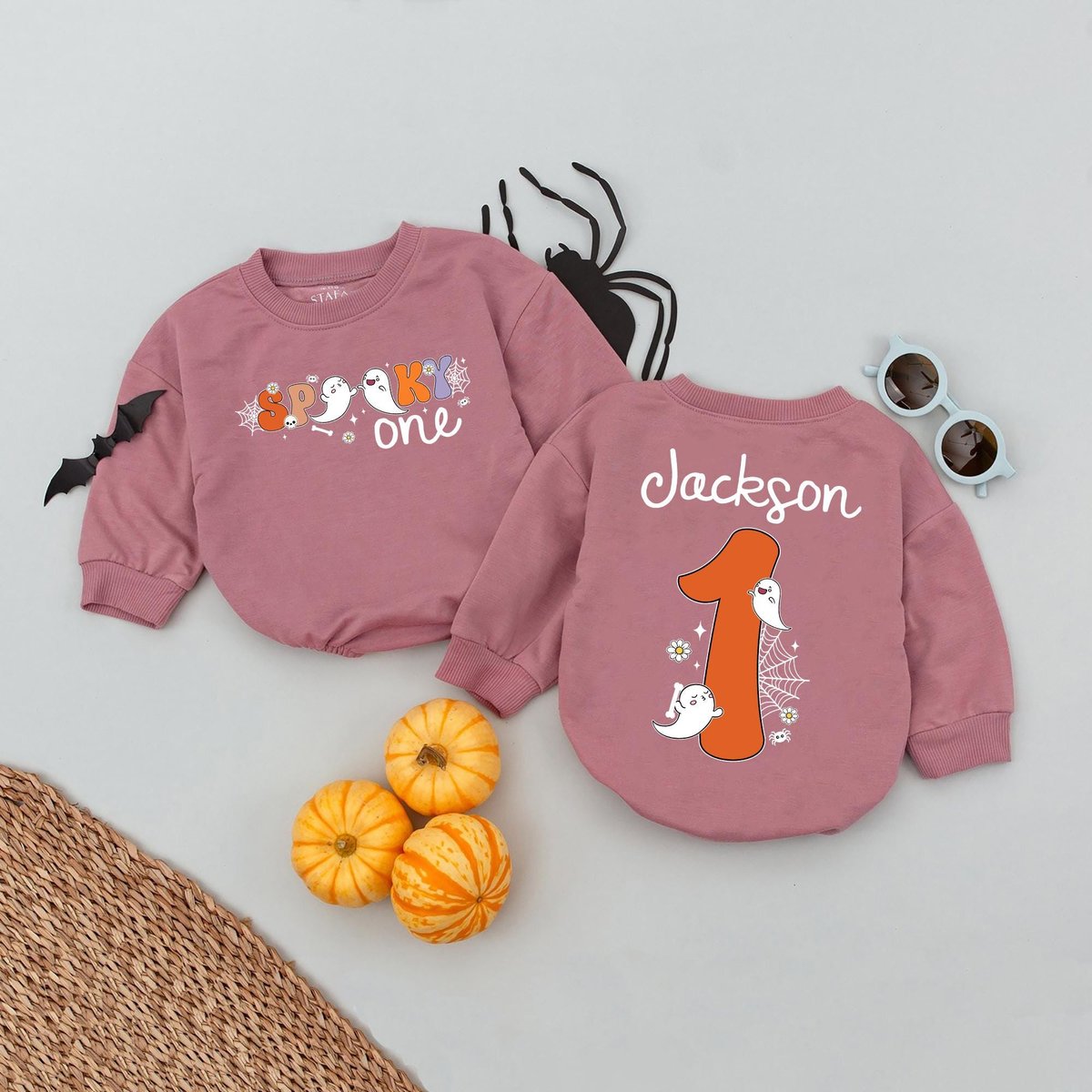 Personalized Name Spooky One Baby Romper One Spooky Dude Bodysuit My First Halloween Baby Outfit Bab