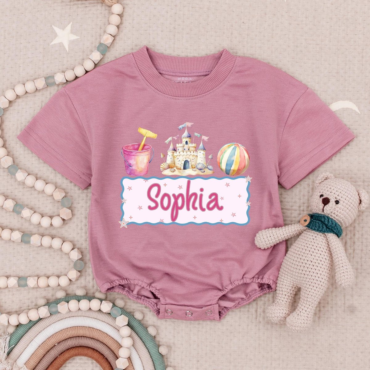 Personalized Name Summer Girl Baby Romper Custom Girls Sandcastle Babysuit Personalized Name Babysui