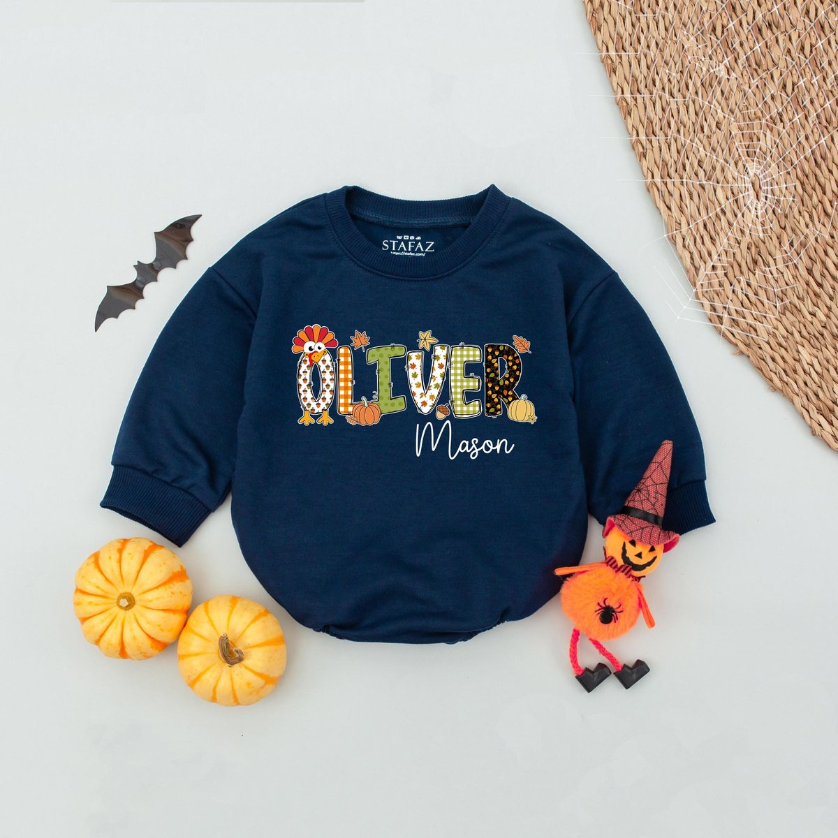 Personalized Name Thanksgiving Name Bubble Romper Short Sleeves Fall Pumpkin Thanksgiving Baby Rompe