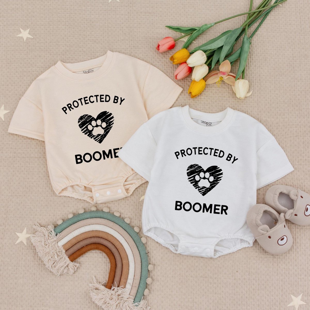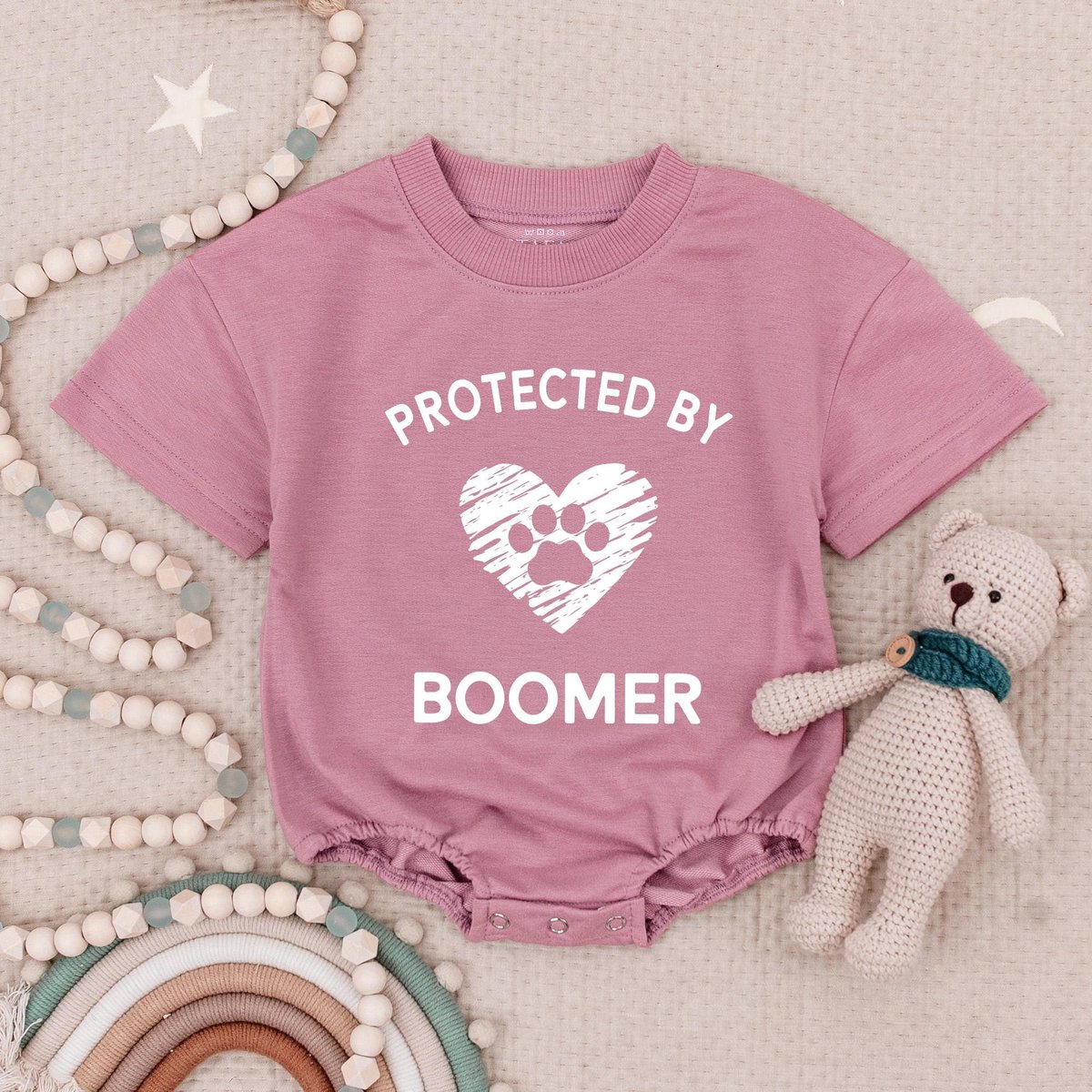 Personalized Protected By Dog Baby Romper Dog Lover Baby Romper Sweatshirt Pet Name Baby Clothes Dog