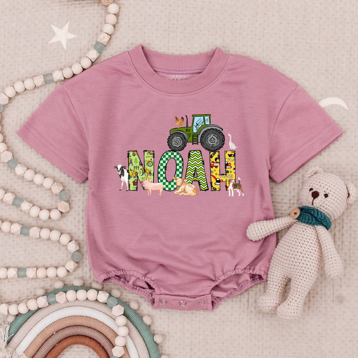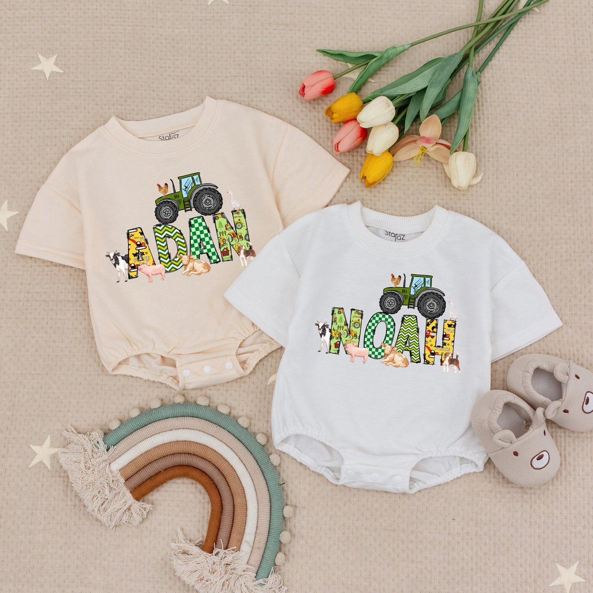 Personalized Tractor Name Baby Romper Tractor Birthday Outfit Baby Boy Birthday Boy Farm Bodysuit Bu
