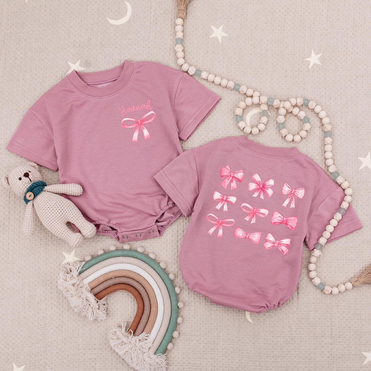 Pink Cute Bows Romper Cute Cute Bow Pink Bodysuit First Baby Romper Baby Girl Clothes Cute Pink Ribb