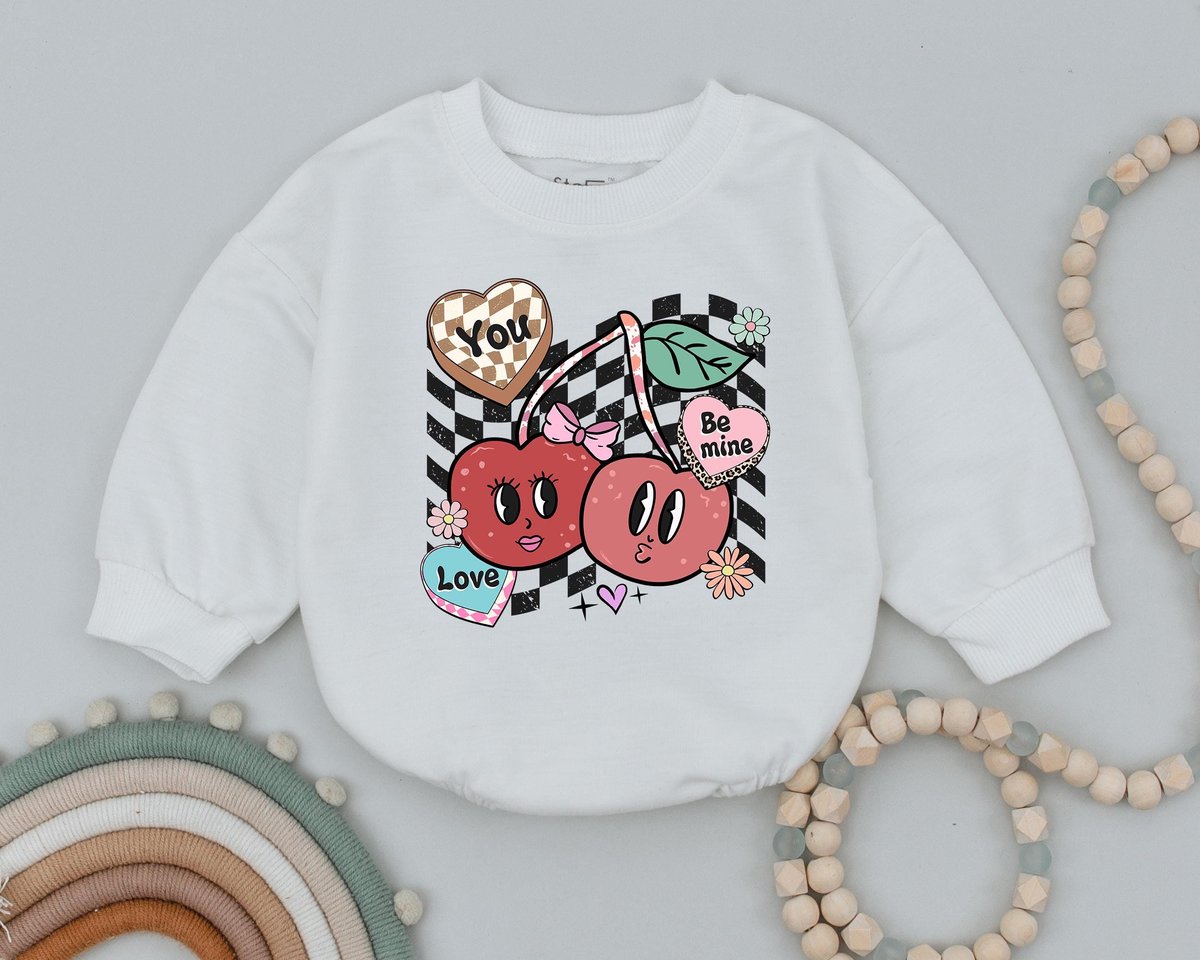 Retro Cherry Kids Valentines Day Romper My 1st Valentines Day Outfits Baby Boys Girls Bodysuit Baby