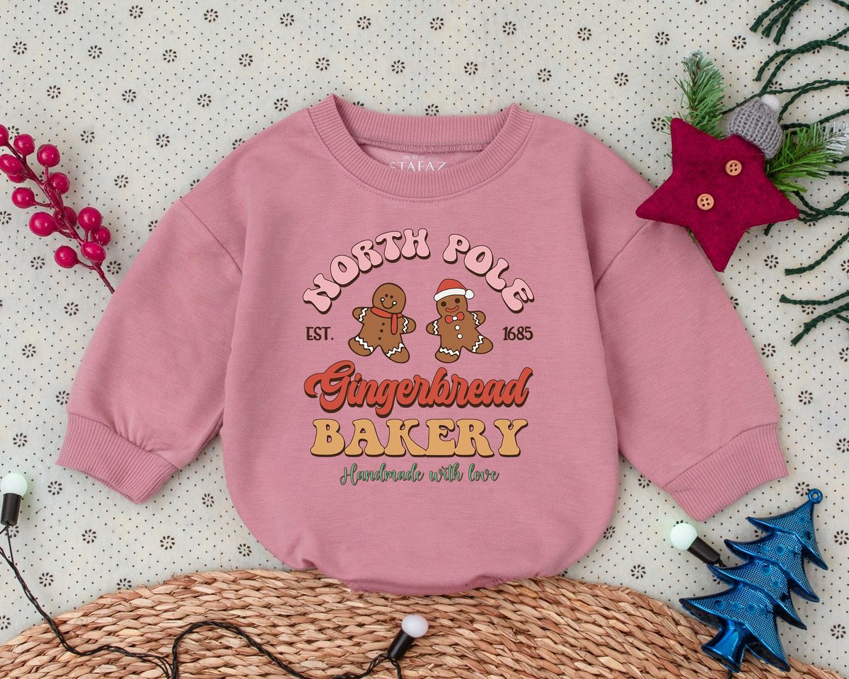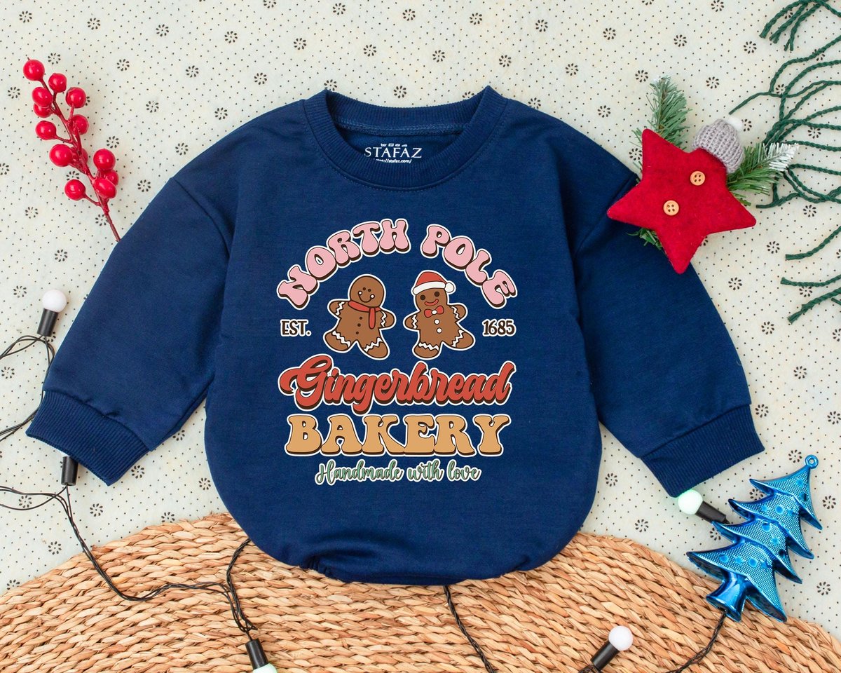 Retro Christmas Romper First Christmas Clothes North Pole Bakery Toddler Sweatshirt Baby Shower Gift