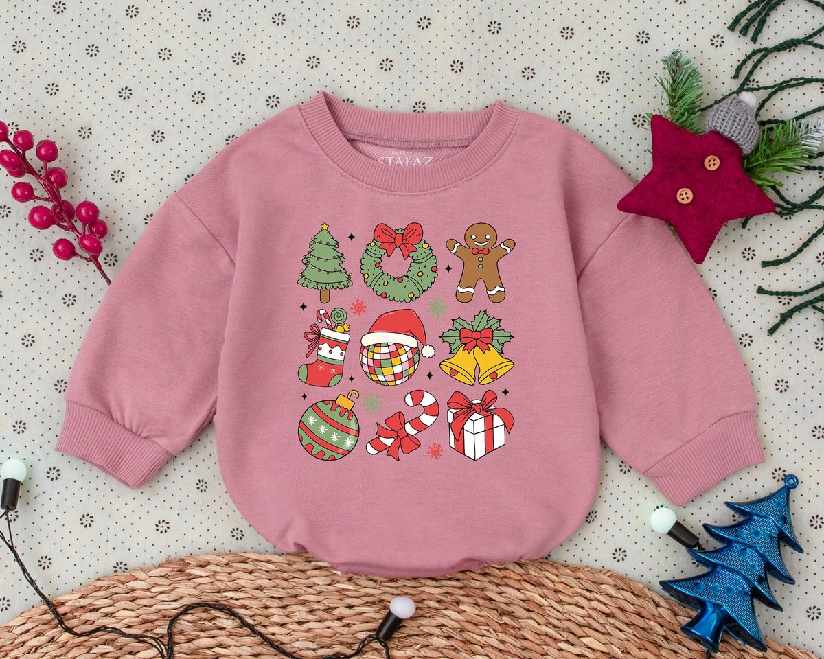 Retro Christmas Vibes Romper First Christmas Clothes Toddler Sweatshirt Baby Shower Gift Bubble Romp