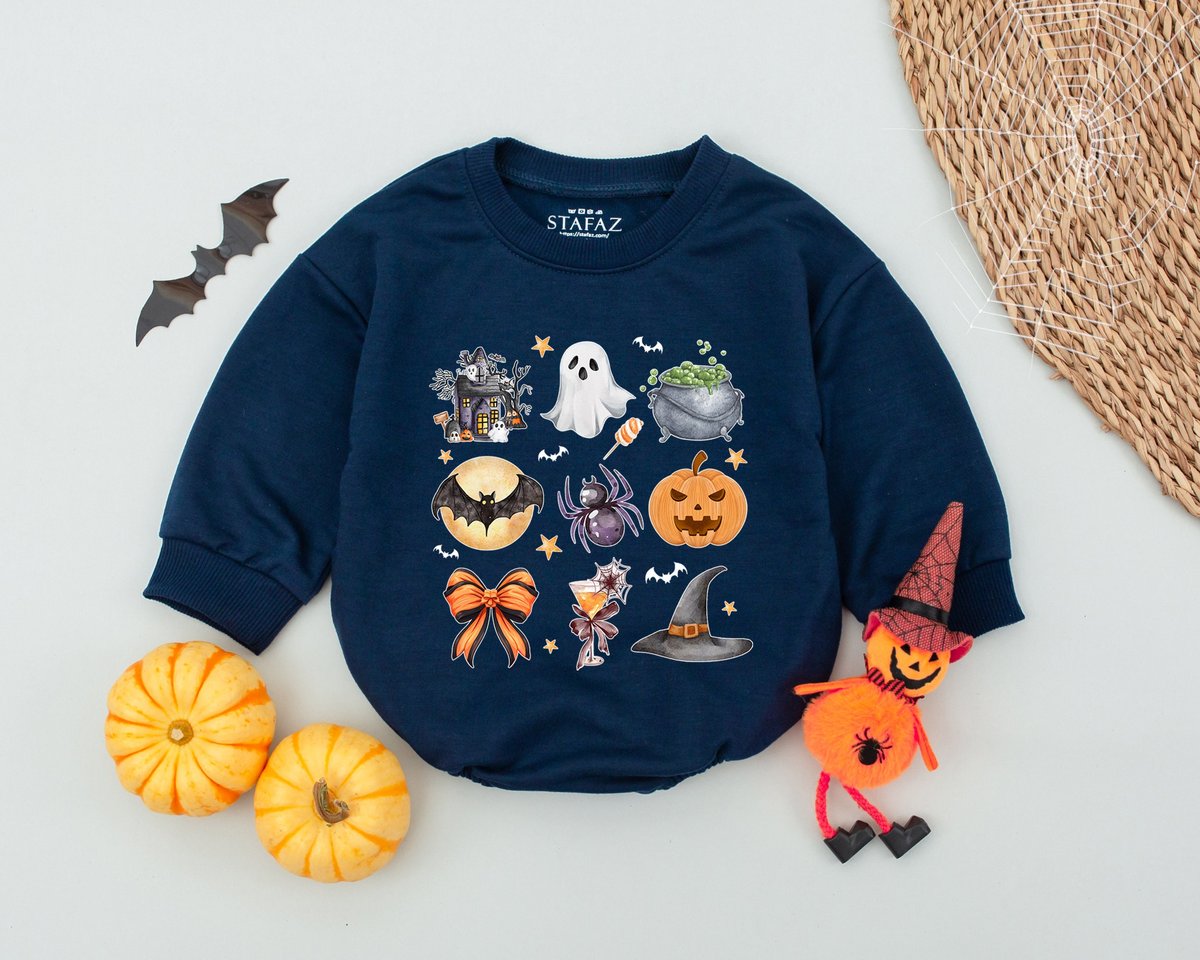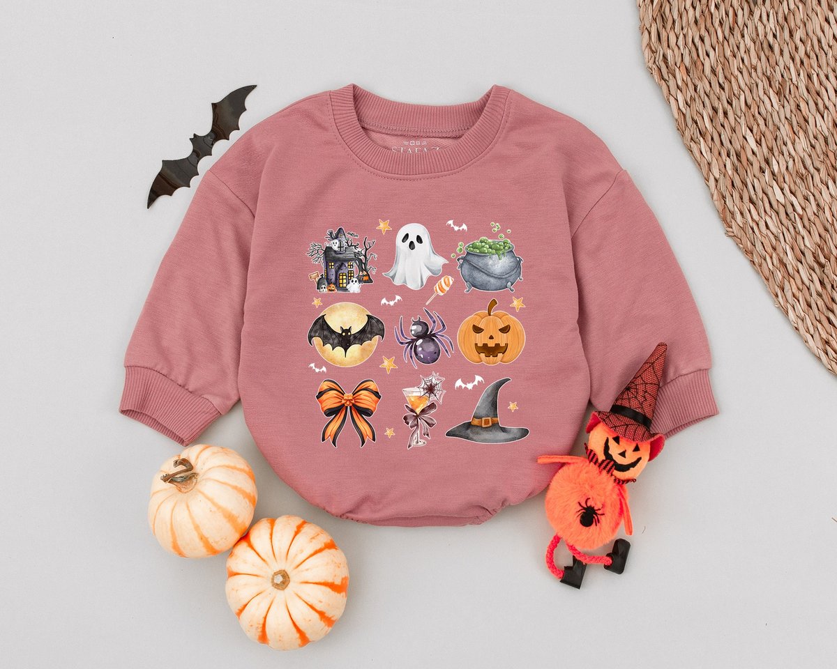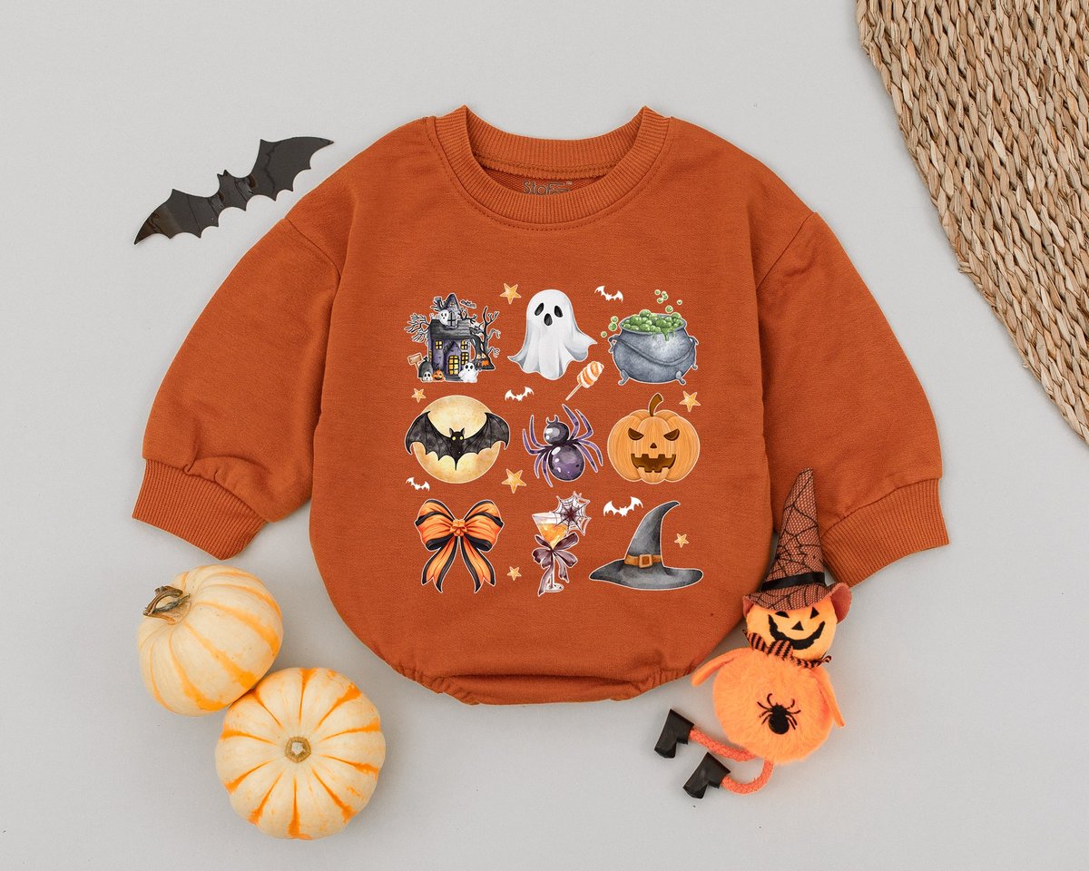 Spooky Groovy Baby RomperGirly Bow Little Pumpkin Ghost Haunted Halloween Baby OutfitFirst Halloween