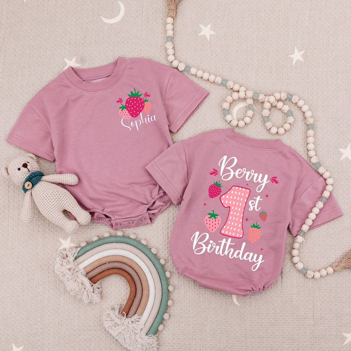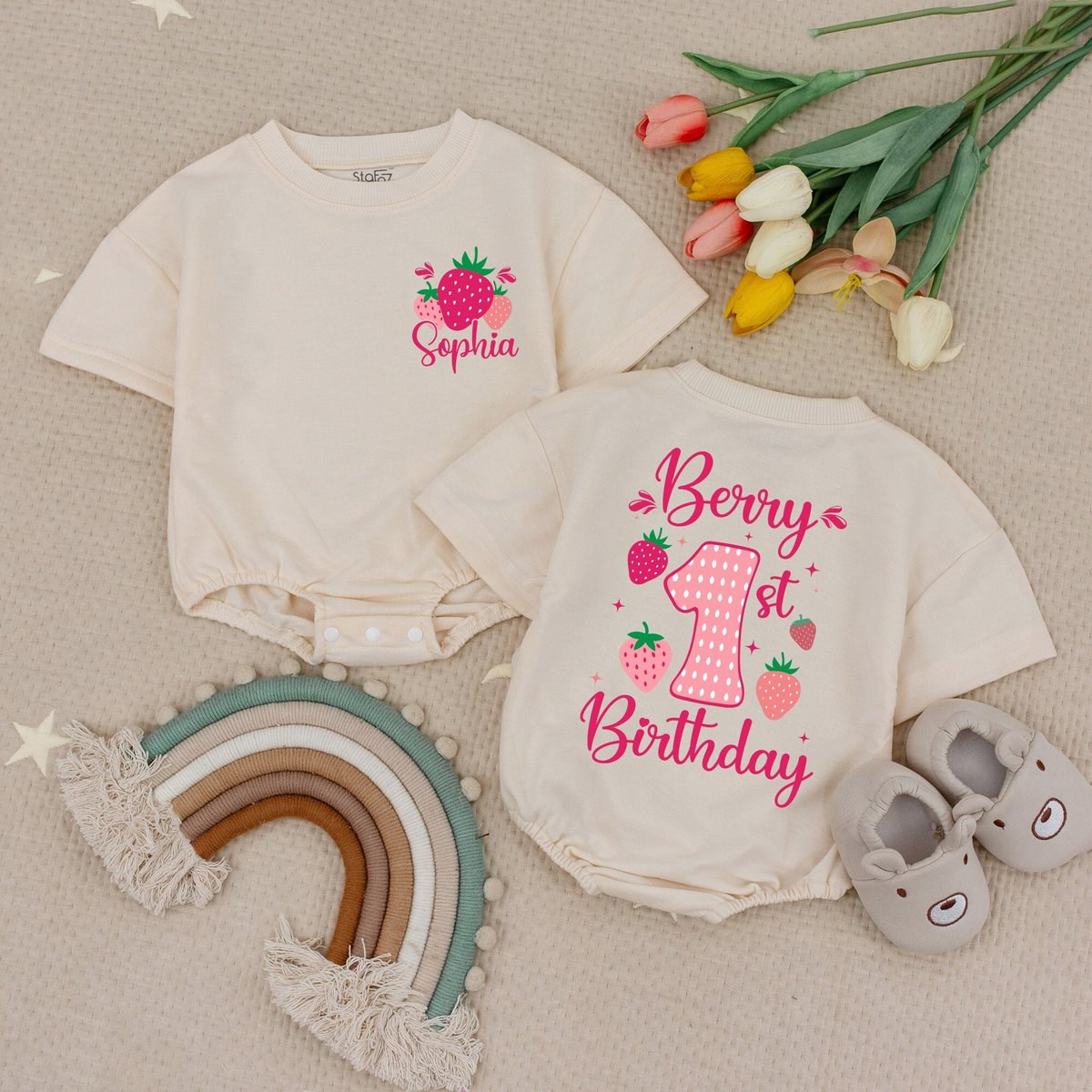 Strawberry Baby Romper First Birthday Girl Baby Girl Birthday Clothes 1st Birthday Bodysuit Bubble