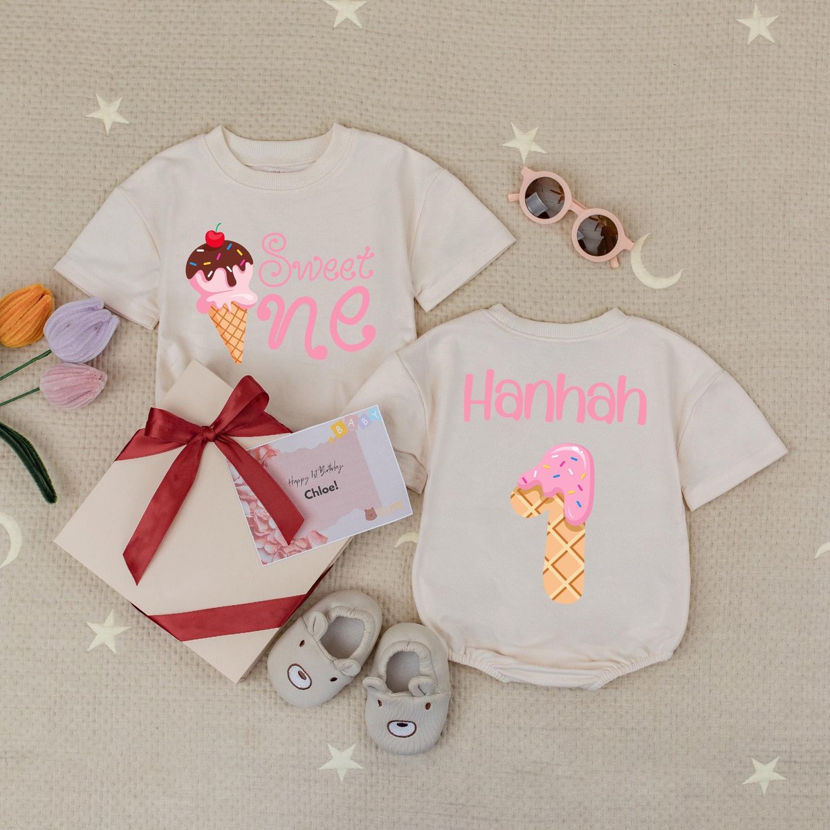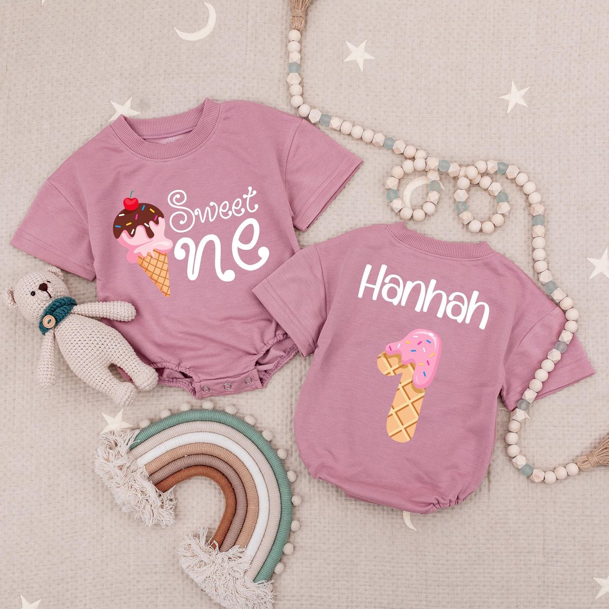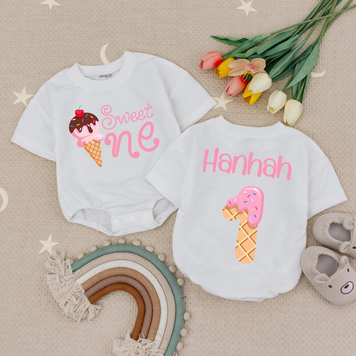 Sweet One Birthday Baby Romper Custom Name Age Birthday Babysuit 1st Birthday Babysuit Ice Cream Bir