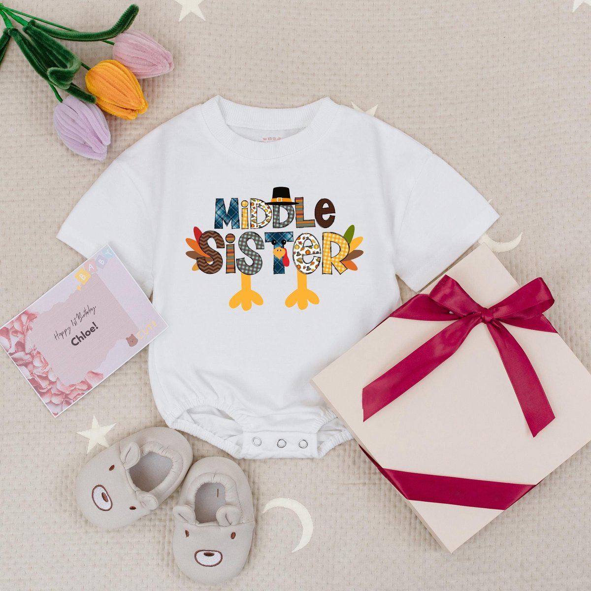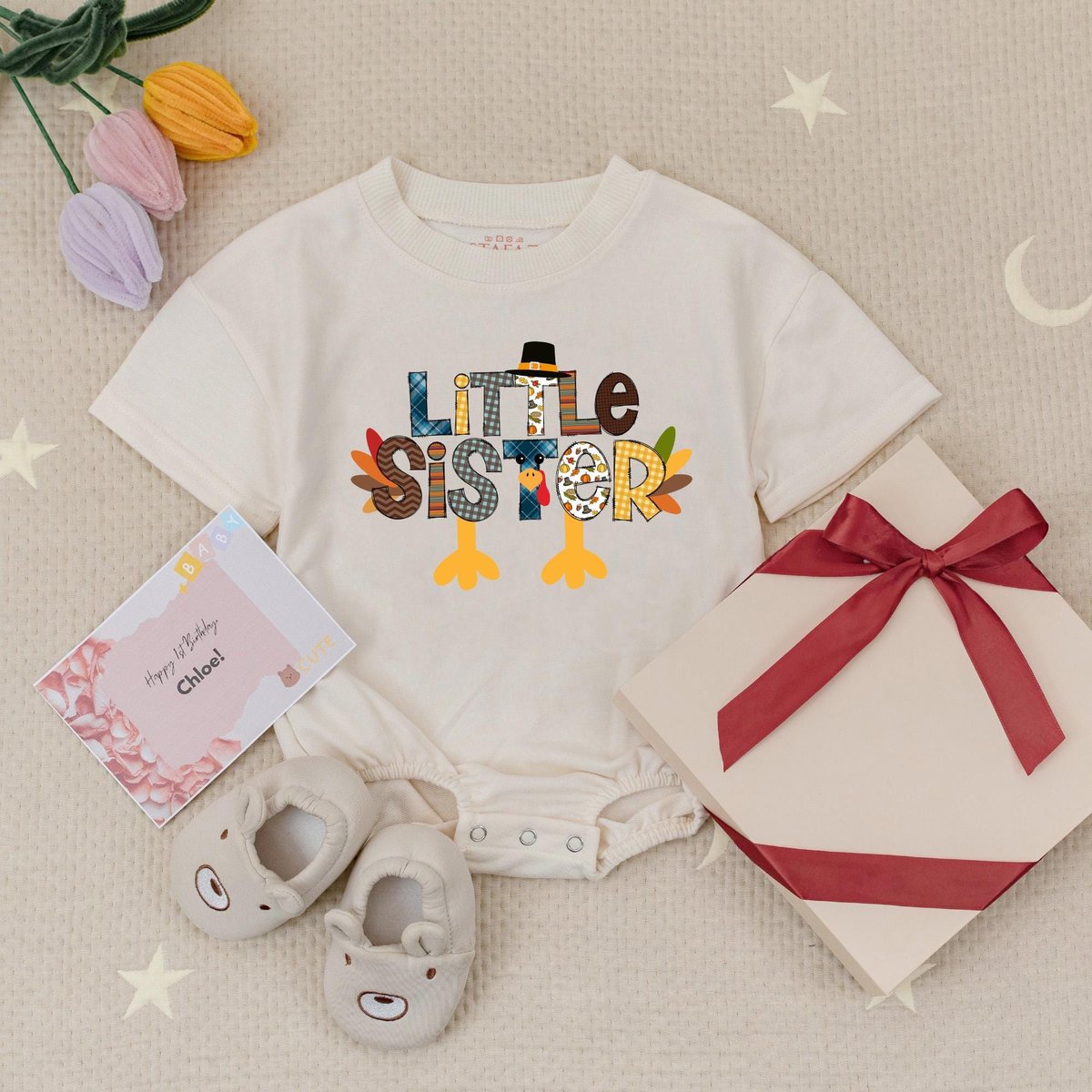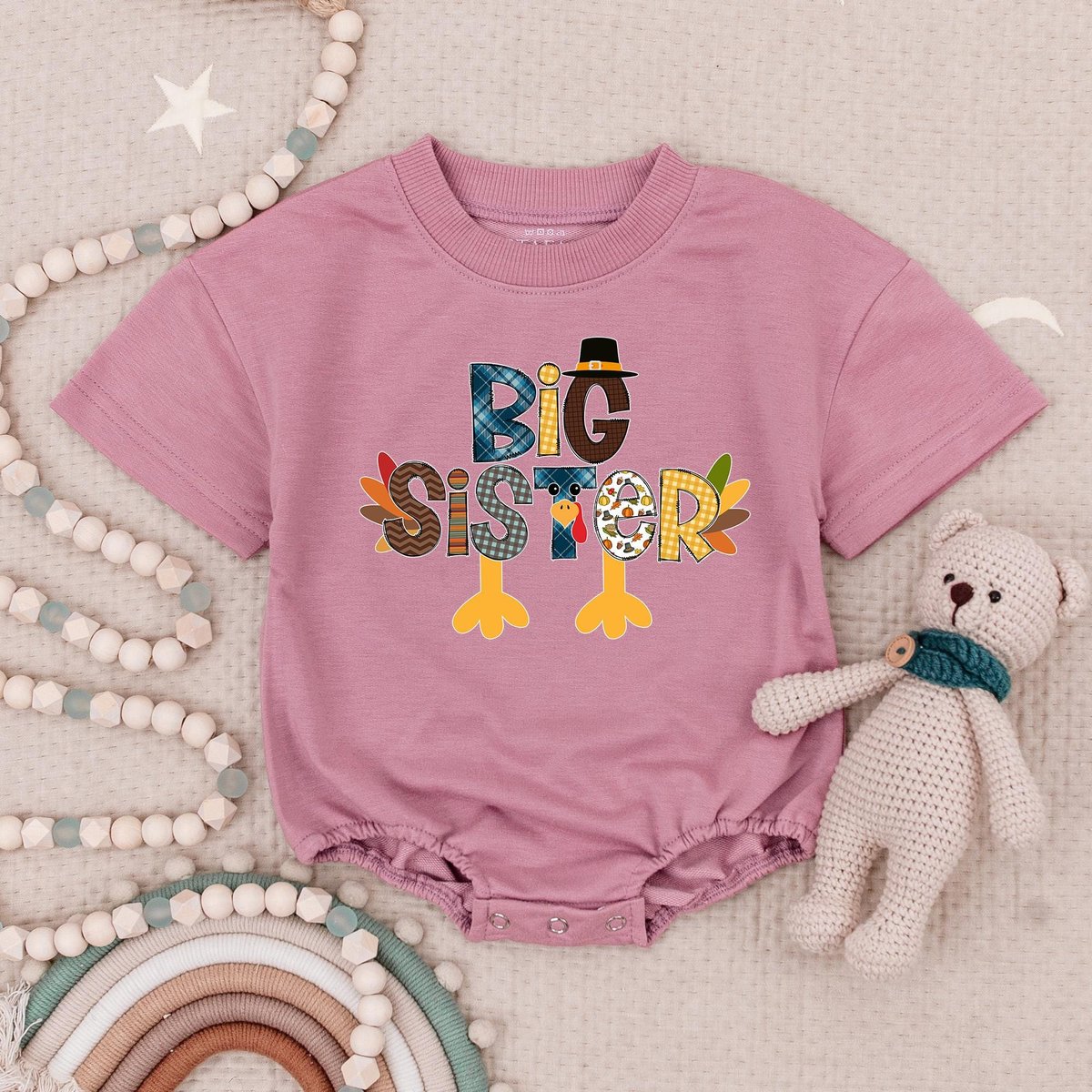 Thanksgiving Kids Big Middle Little Sister Girl Bubble Romper Custom Fall Girl Thanksgiving Baby Rom