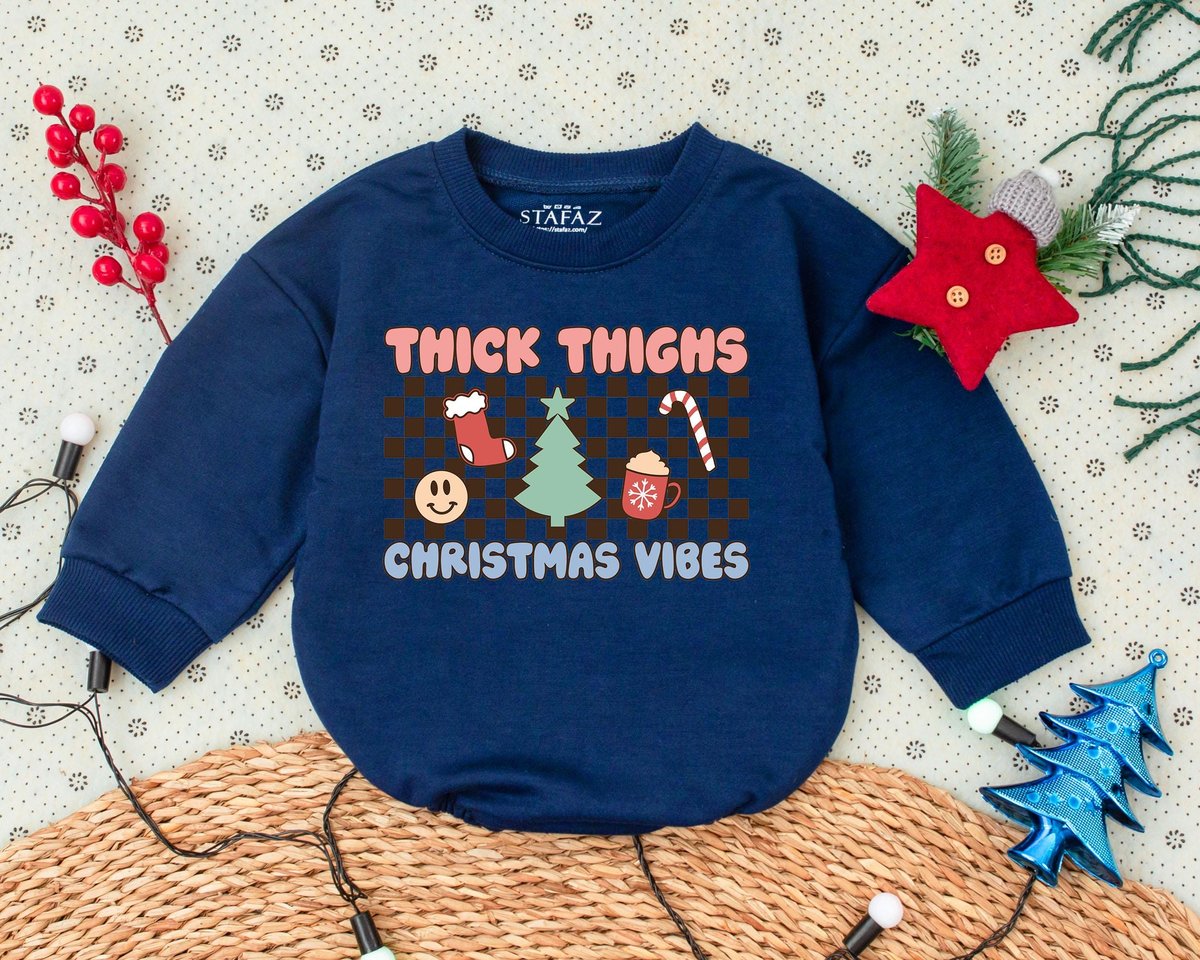 Thick Thigh Christmas Vibes Romper First Christmas Clothes Toddler Sweatshirt Baby Shower Gift Bubbl