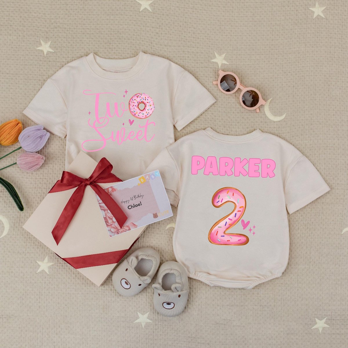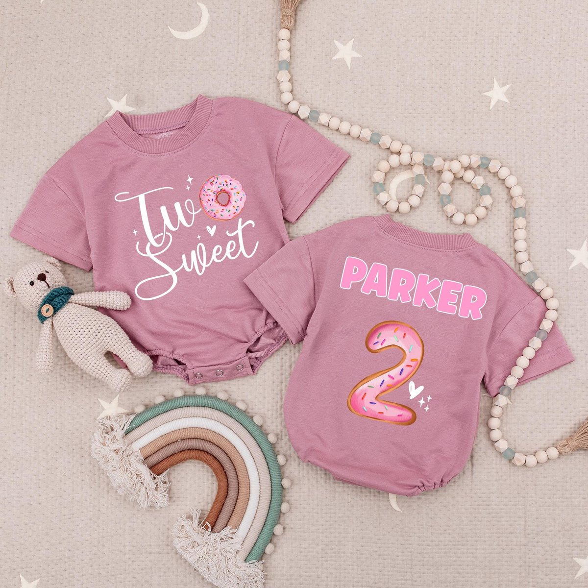 Two Sweet Donut Baby Romper 2nd Birthday Baby Bodysuit Cute Donut Themed Birthday Outfit Toddler Gir