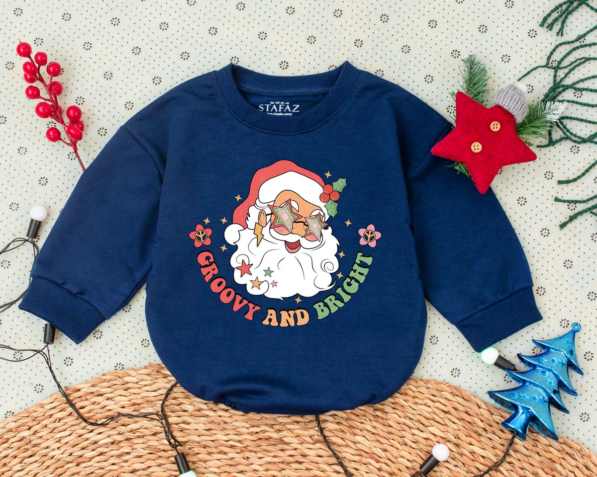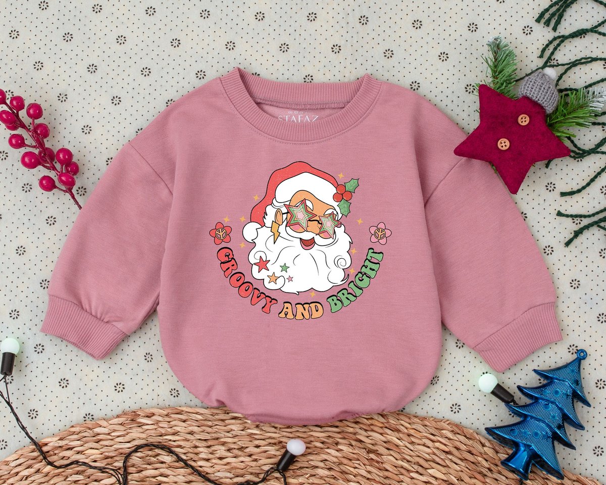 Vintage Santa Romper Groovy and Bright First Christmas Clothes Toddler Sweatshirt Baby Shower Gift B