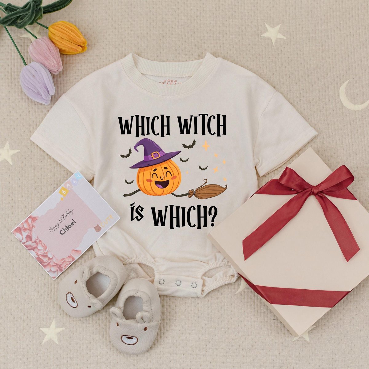 Which Witch is Which Halloween Baby Romper Twin Witches Matching Baby Romper First Halloween Twin Bu