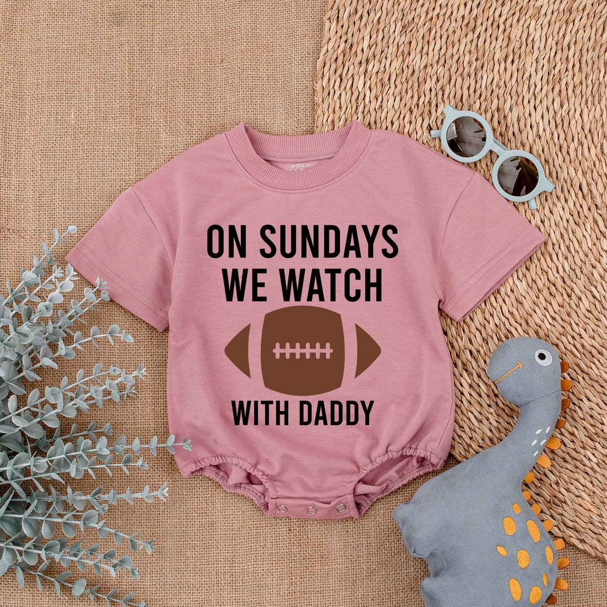 On Sundays We Watch with Daddy Romper Football Season Kid Sweatshirt Oversized Sweatshirt Baby Rompe 168