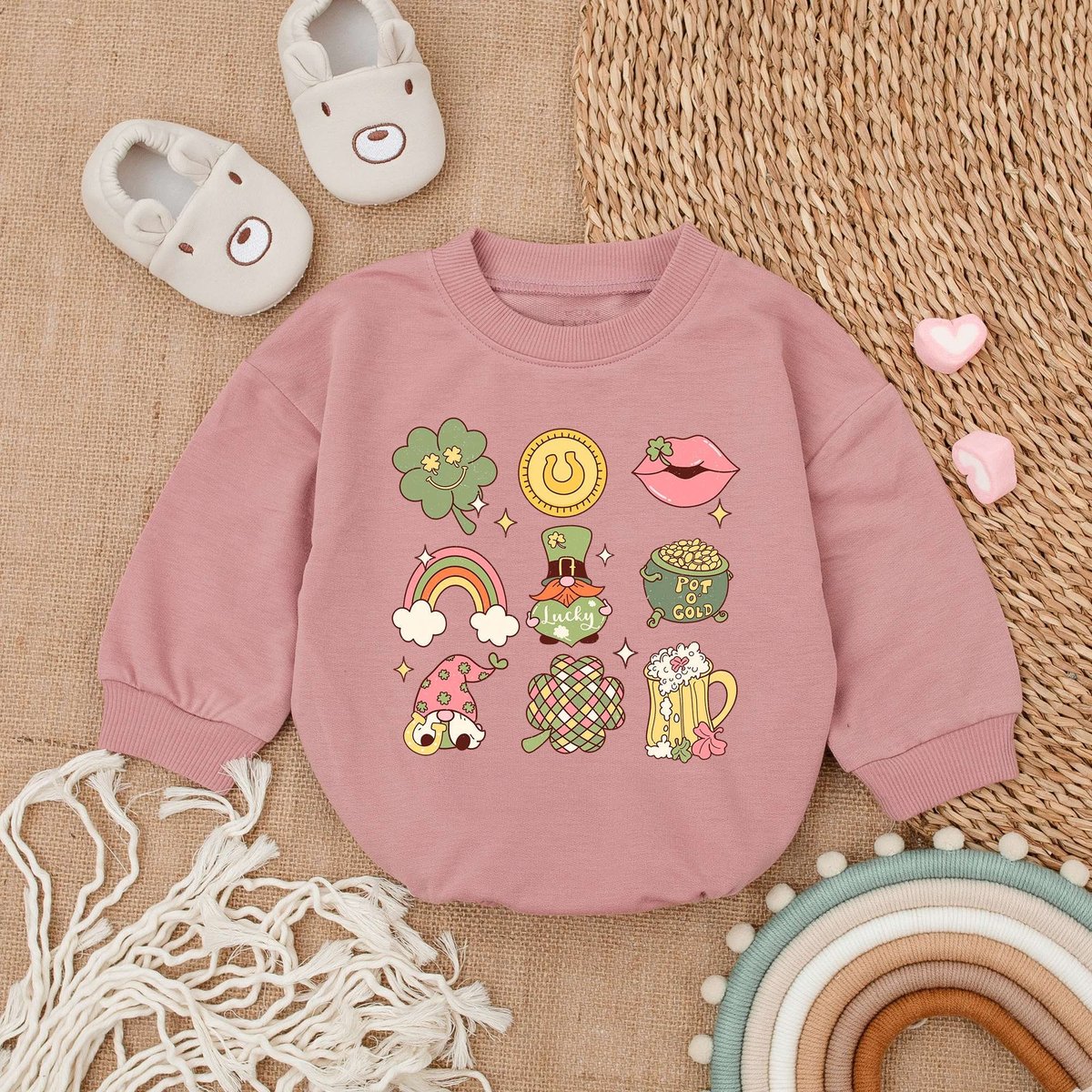 Retro Irish Baby Outfit St Patrick’s Day Bodysuit St Patrick’s Day Baby Clothes Light Mauve B 164