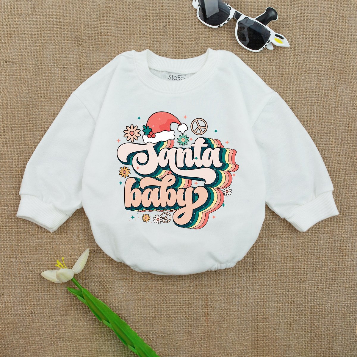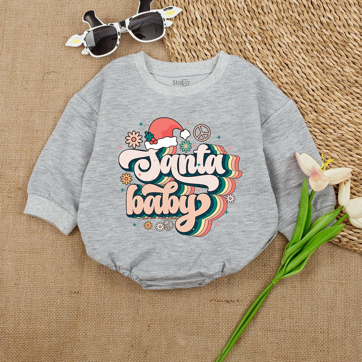 STAFAZ Retro Santa Baby RomperChristmas Baby Outfit Christmas Baby RomperFirst Christmas OutfitSan 152