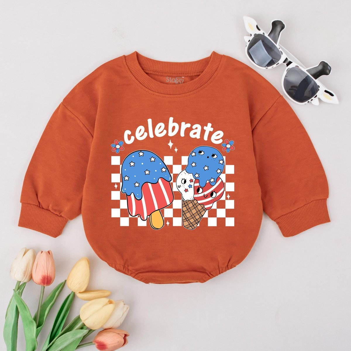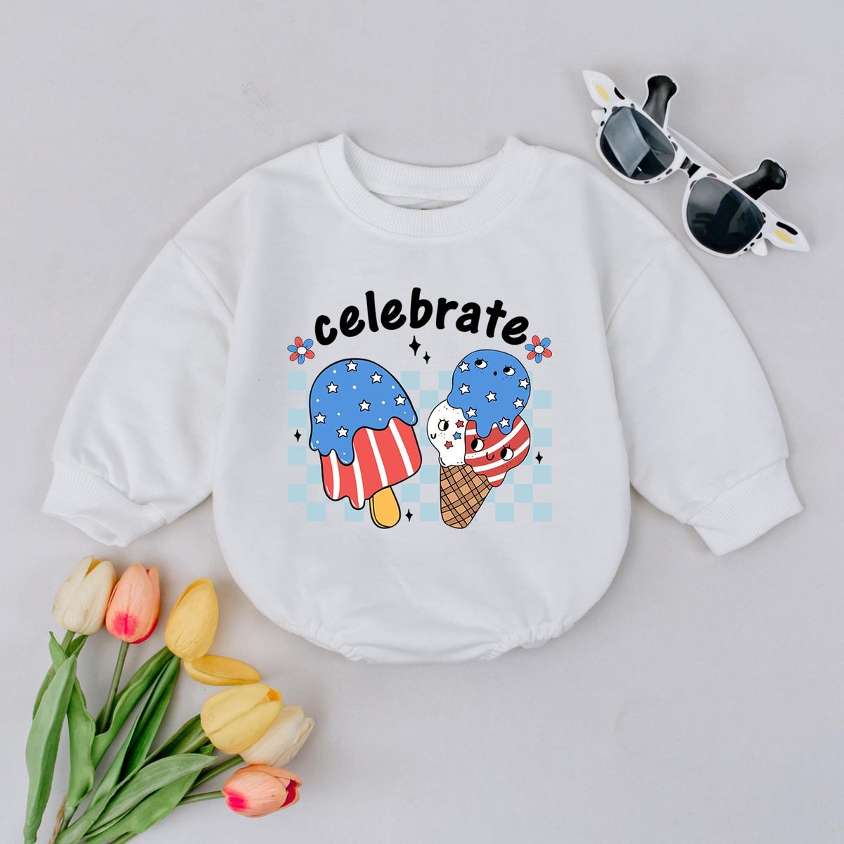 4th of July Baby Patriotic Baby Outfit Cute Ice Cream Baby Shirt Independence Day Toddler Outfit Sum 429