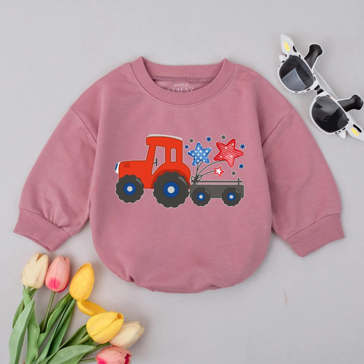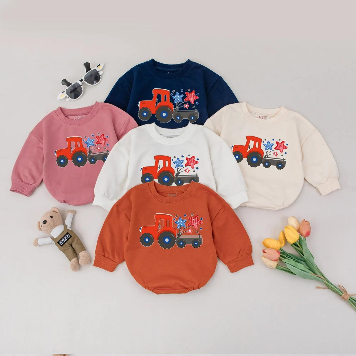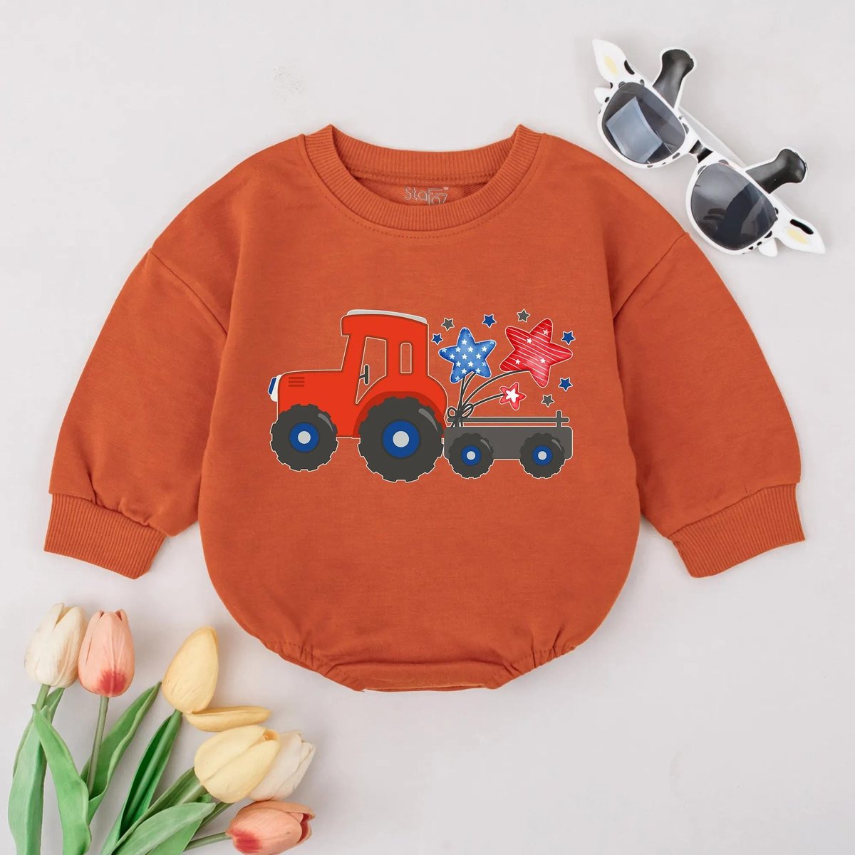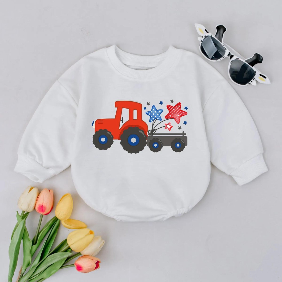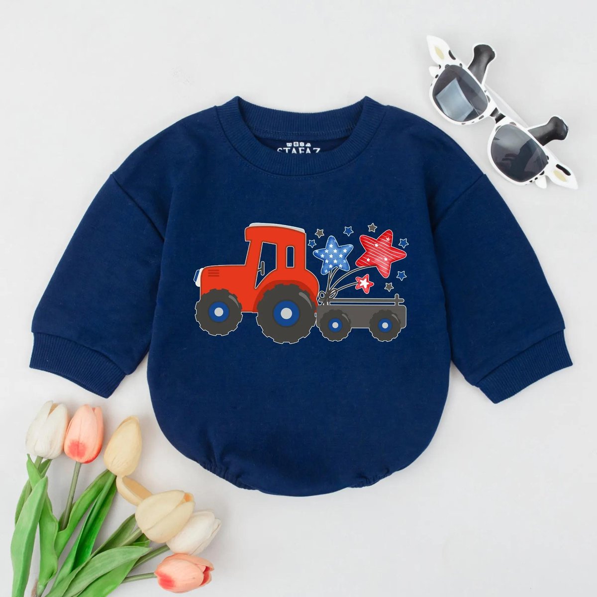 4th of July Tractor Baby Romper Patriotic Red White Blue Outfit USA Infant Bodysuit Toddler Star Bal 430