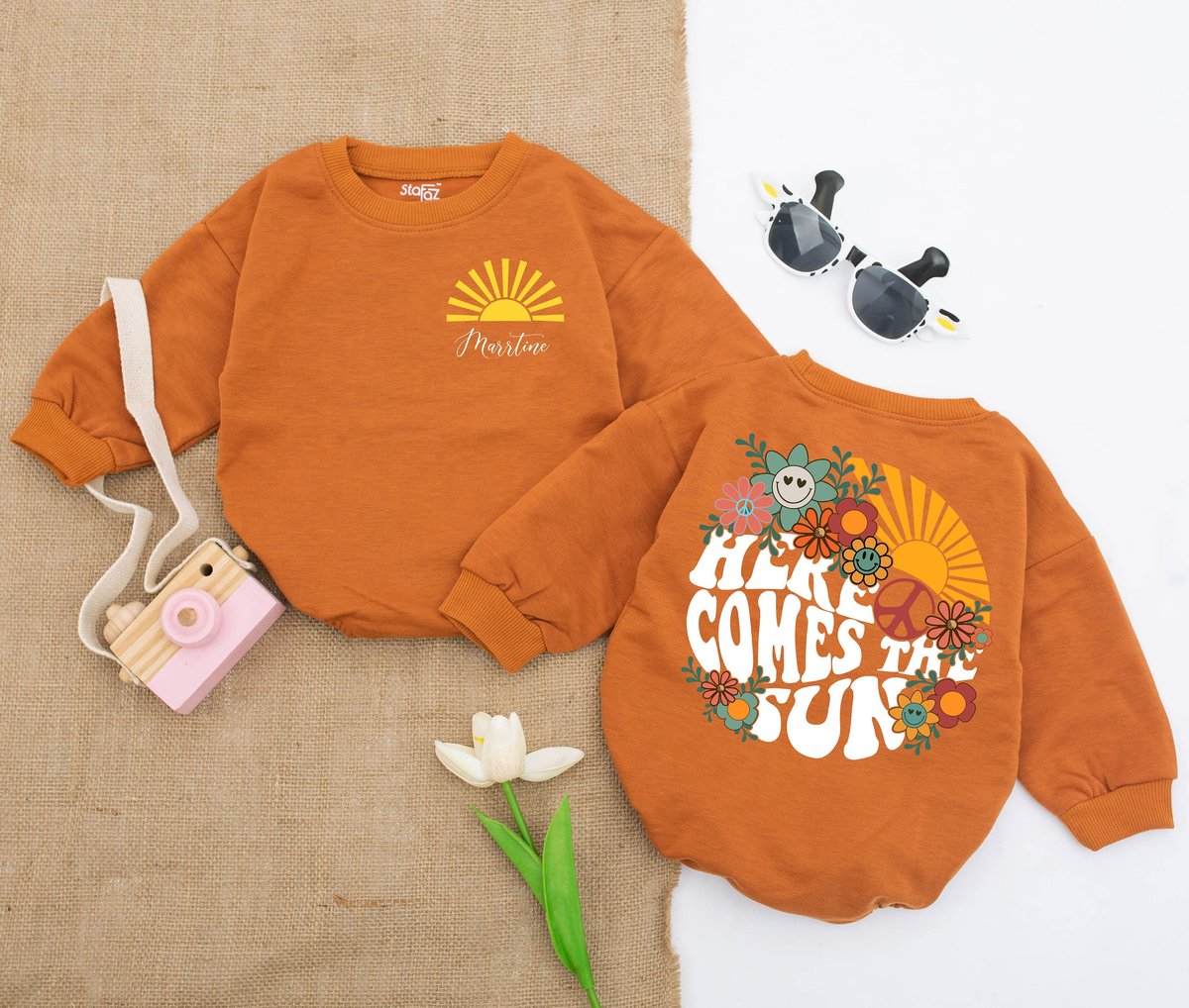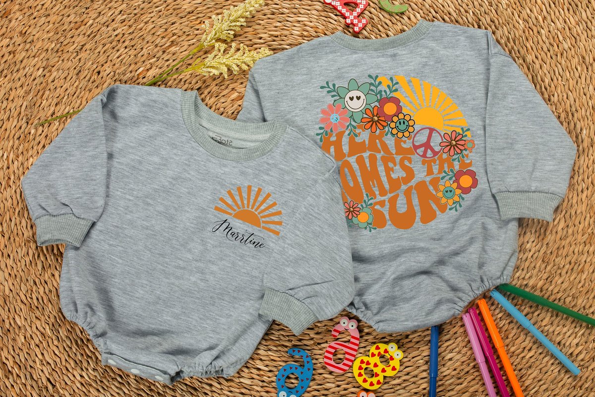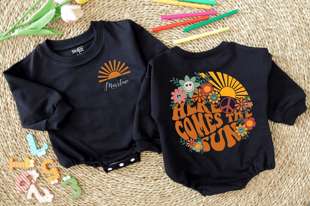 Beige Sun Romper Here Comes The Sun Romper Retro Romper Unisex Kids Body 100 Organic Cotton Oversize 153