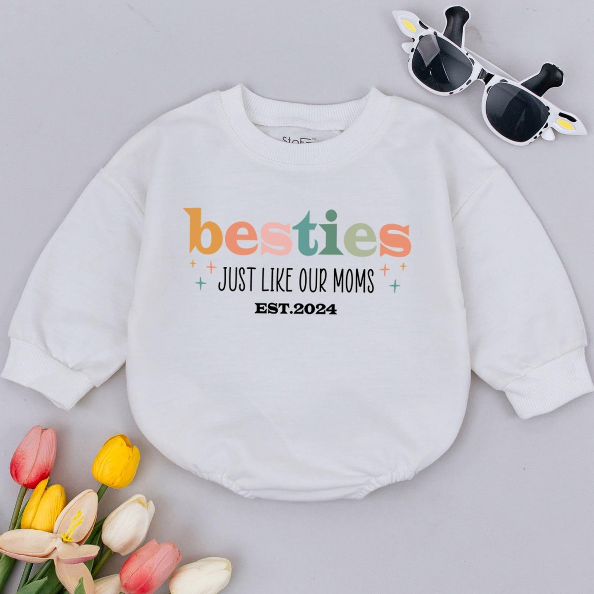 Besties Just Like Our Moms Baby Romper Best Friend Outfits Baby Clothes Funny New Mom Gift BFF Gift 181