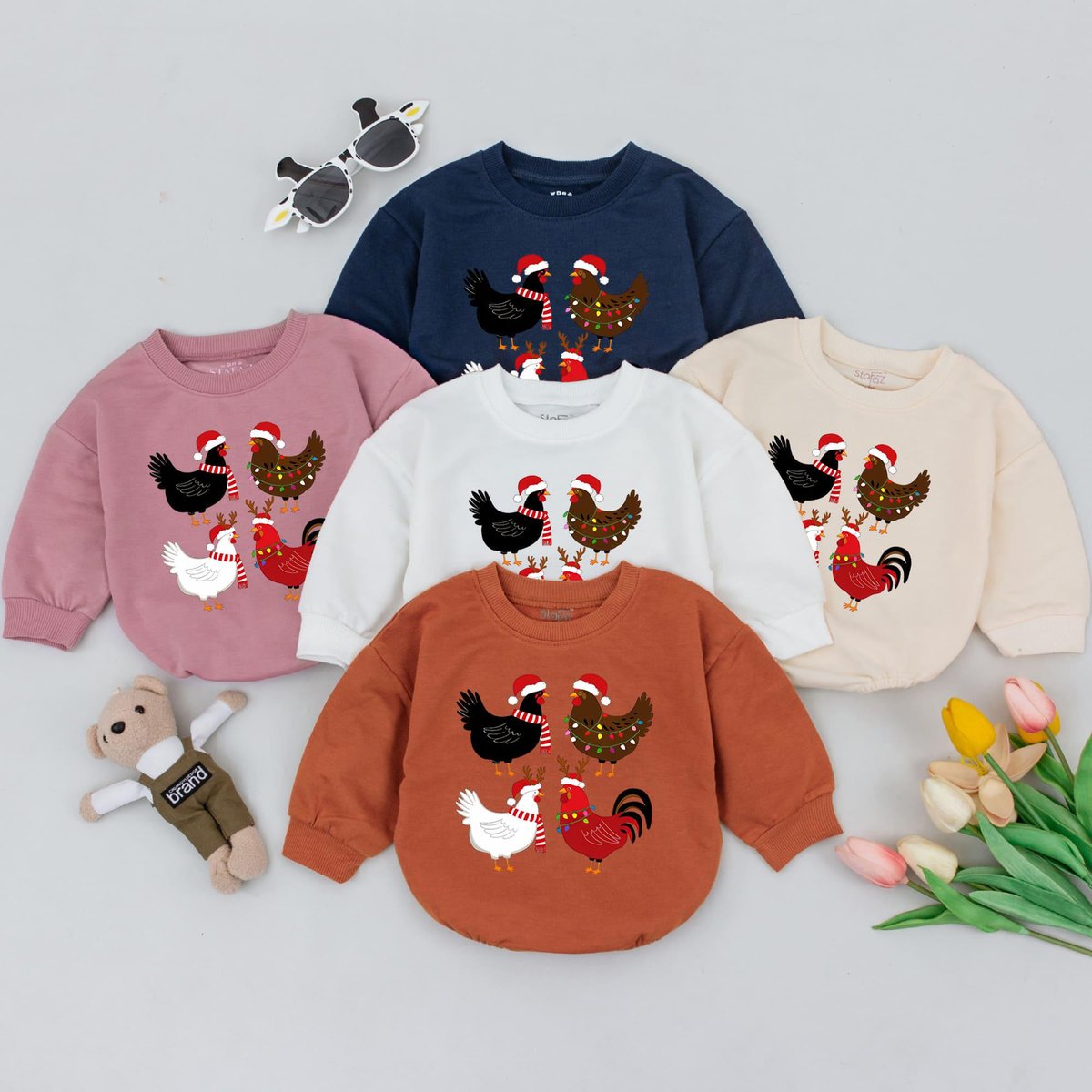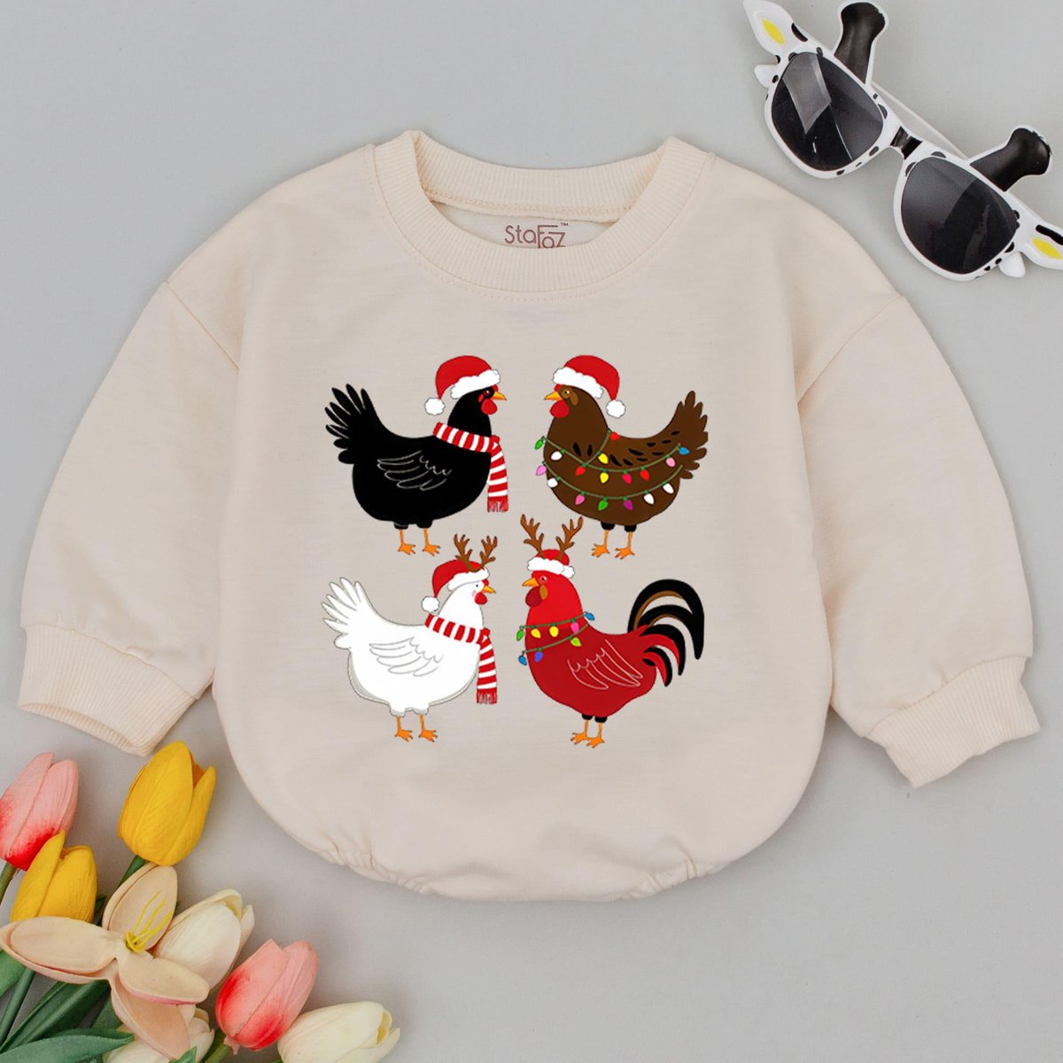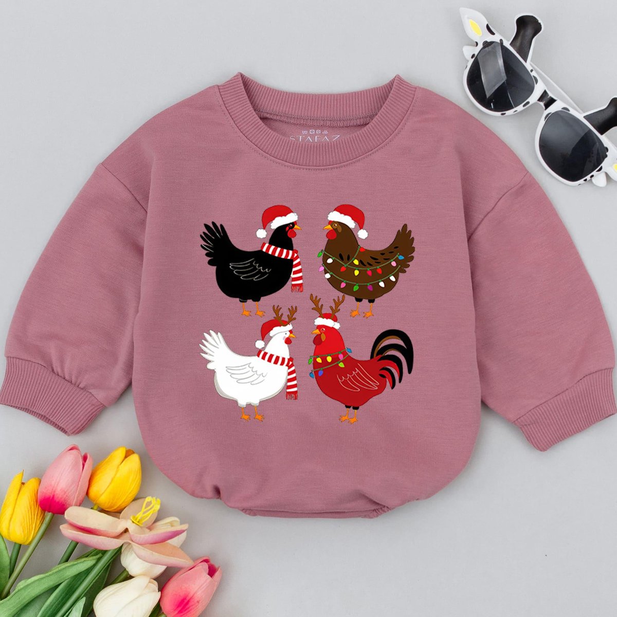 Chicken Christmas Baby Romper Baby First Christmas Baby Holiday Outfit Retro Christmas Baby Shower G 177