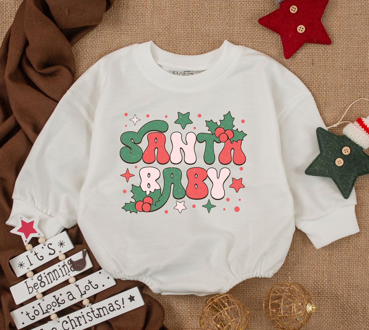 Christmas baby Outfit Santa baby super soft cozy warm sweatsuit Christmas baby Retro Christmas outfi 157