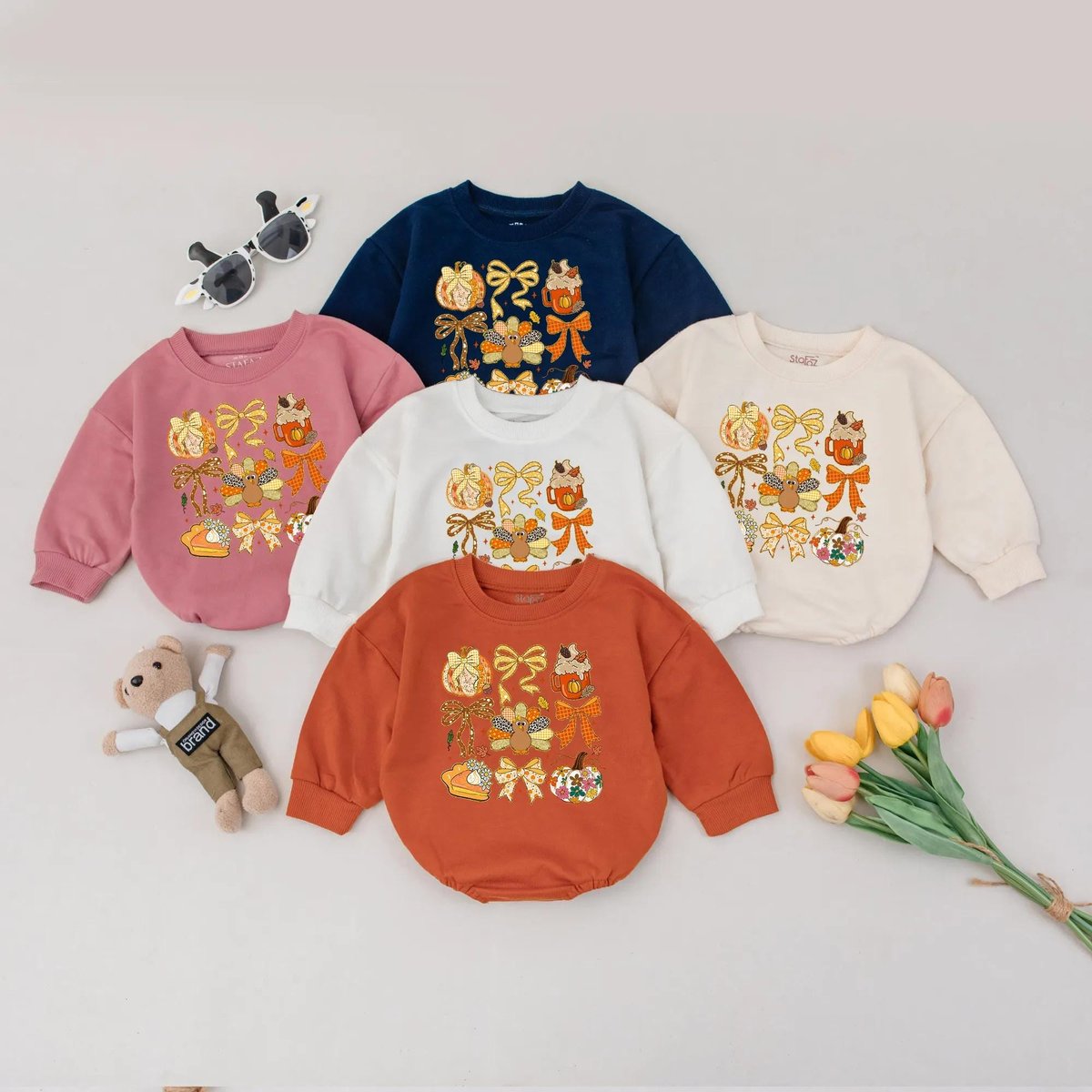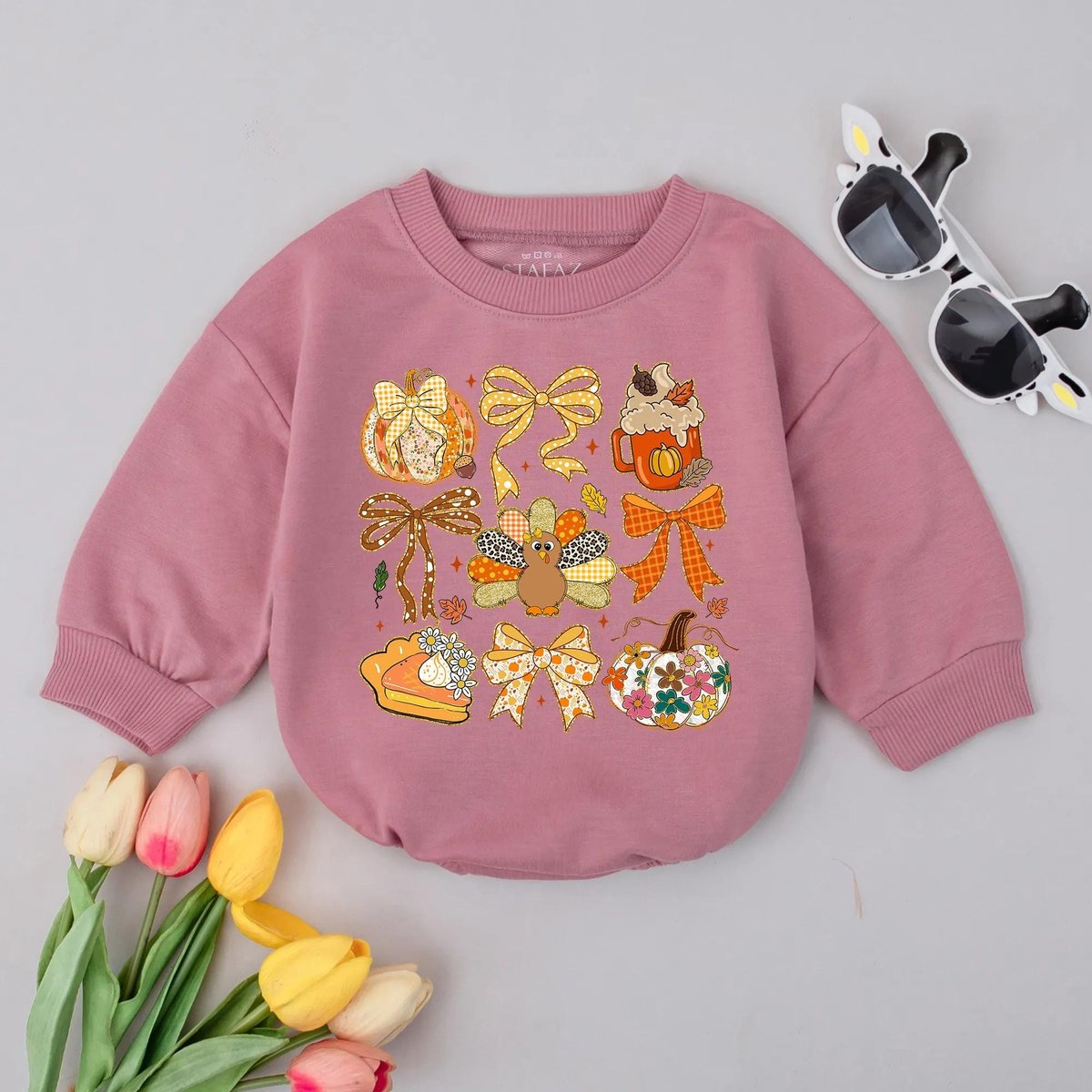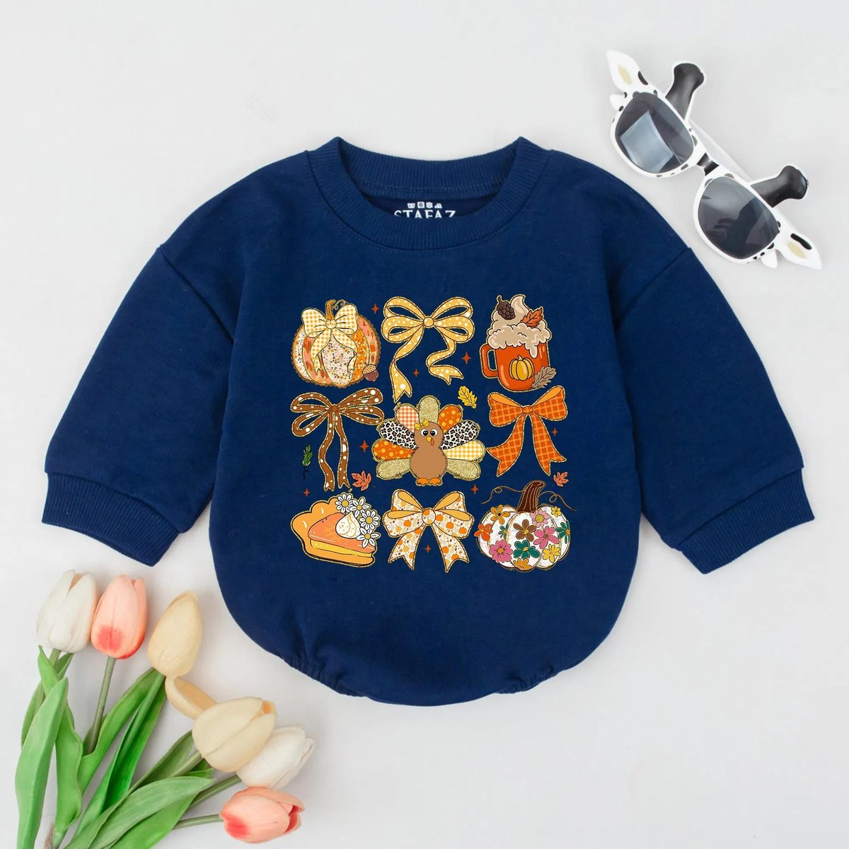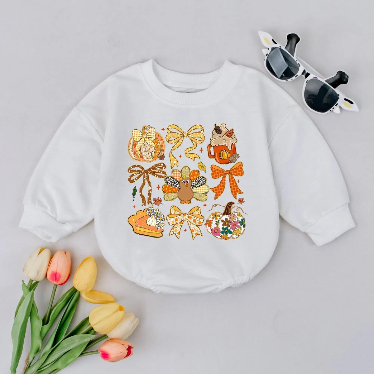 Colorful Fall Bubble Romper Floral Thanksgiving Bodysuit Cute Turkey Infant Outfit Fall Baby Shower 436