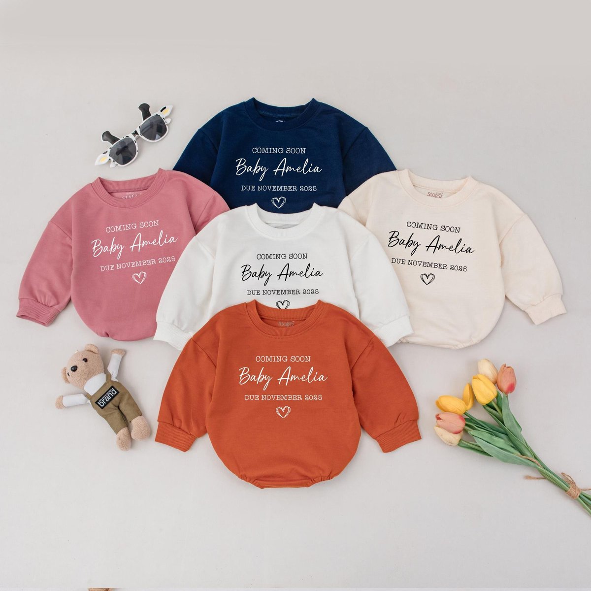 Coming Soon Baby Bubble Romper Custom Pregnancy Announcement Outfit Due Month Baby Reveal Gift Perso 188
