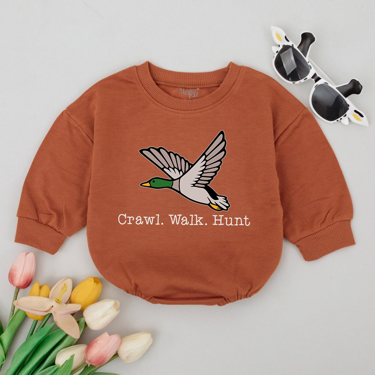 Craw Walk Hunt Baby Romper Duck Hunting Bodysuit Mallard Baby Clothes Pregnancy Reveal Newborn Baby 174
