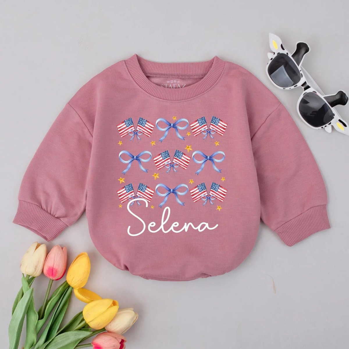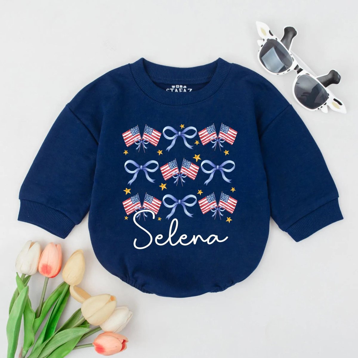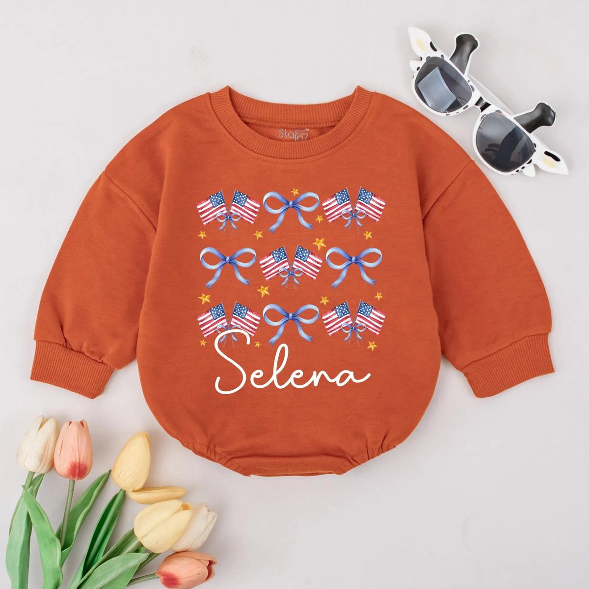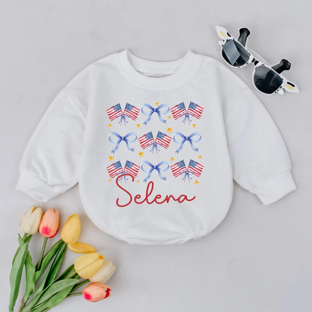 Custom Name 4th Of July Baby Girl Outfit Patriotic Infant Bodysuit Independence Day Clothes Red Whit 431