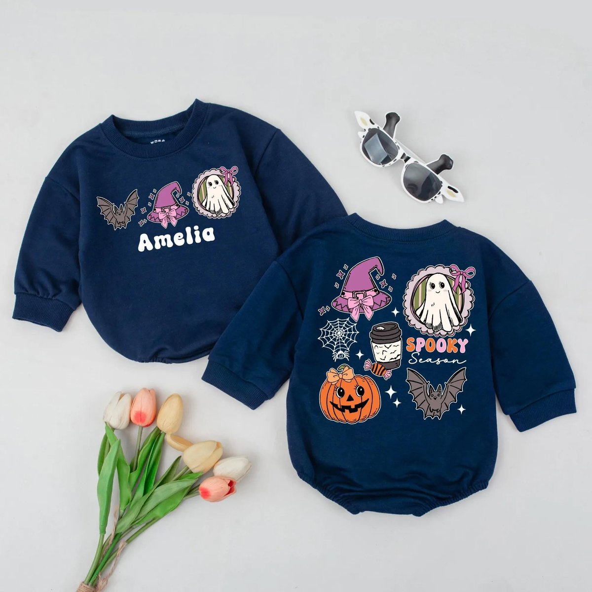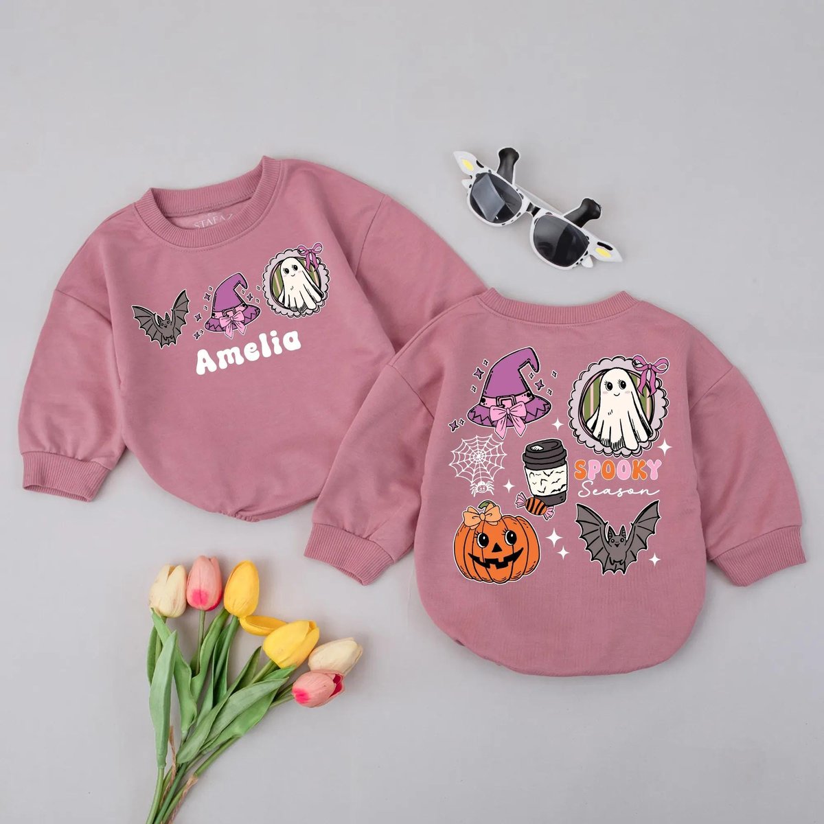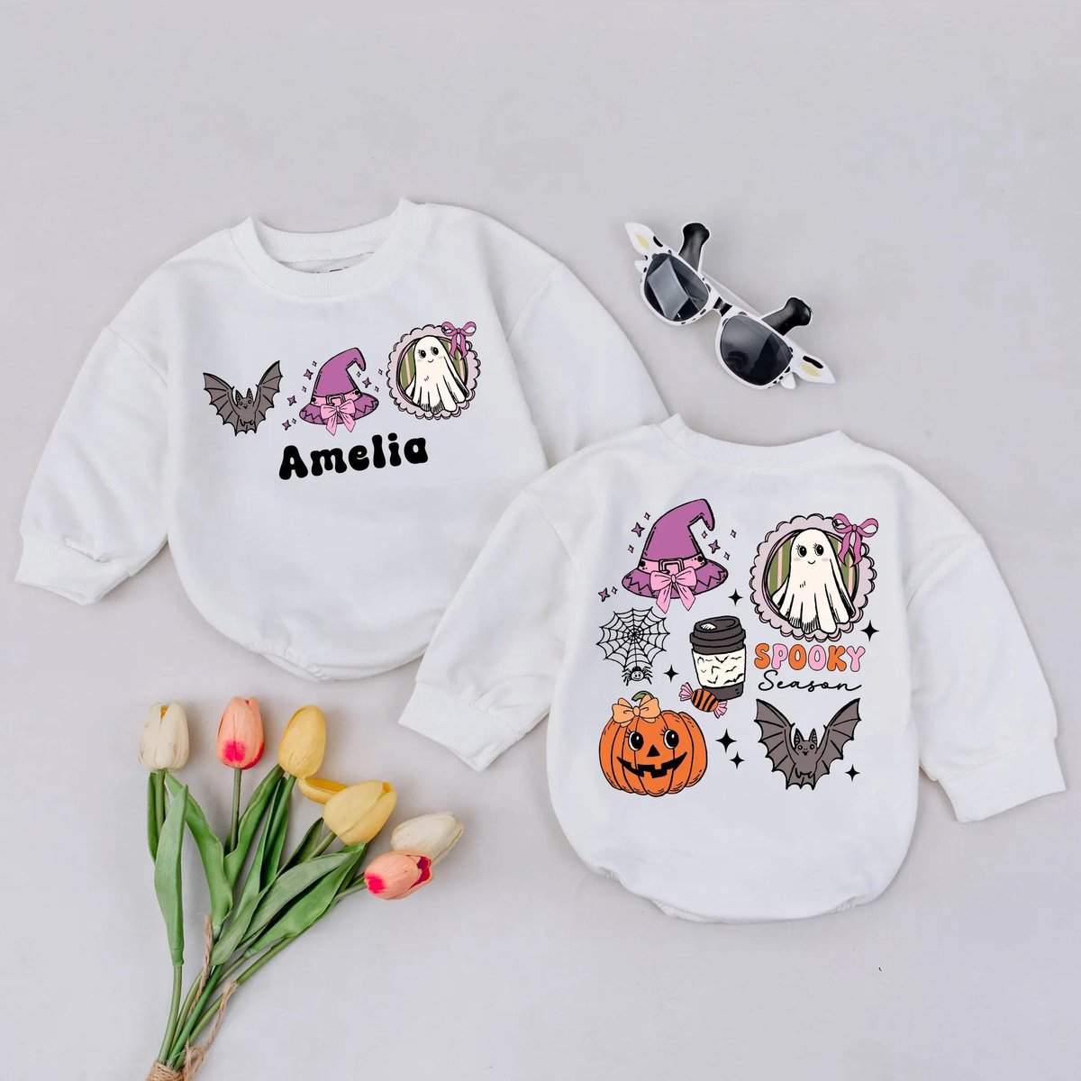 Custom Name Ghost Pumpkin Romper Cute Spooky Season Costume Customized Halloween Baby Outfit Fall Pu 436