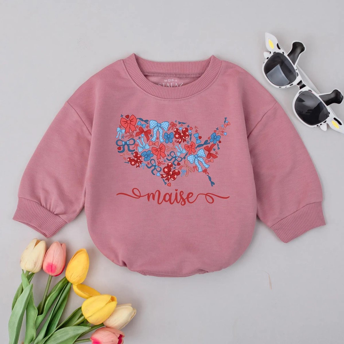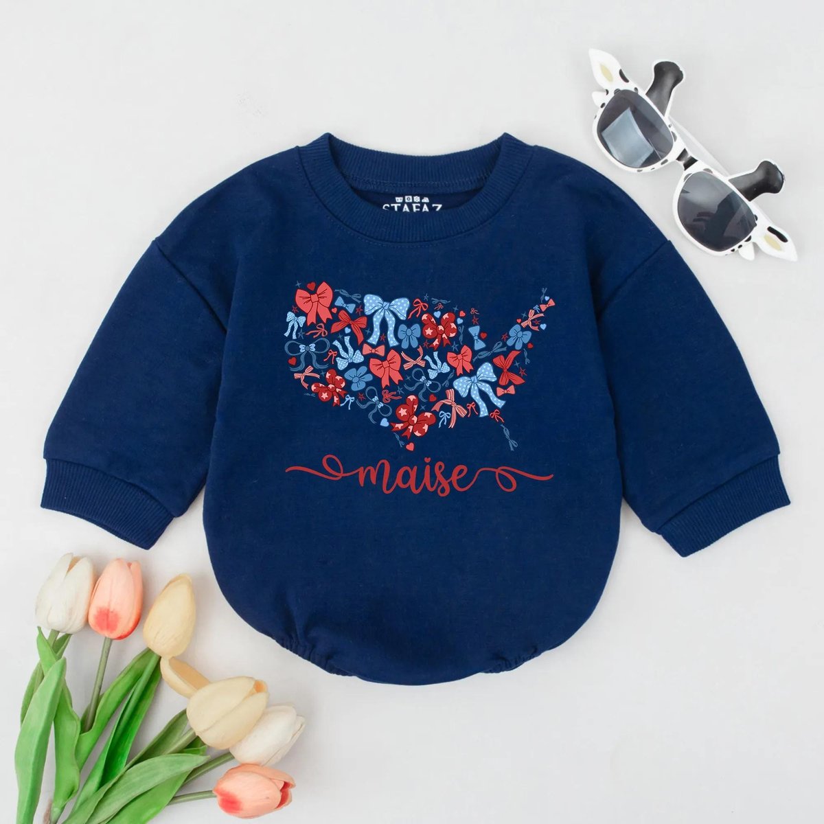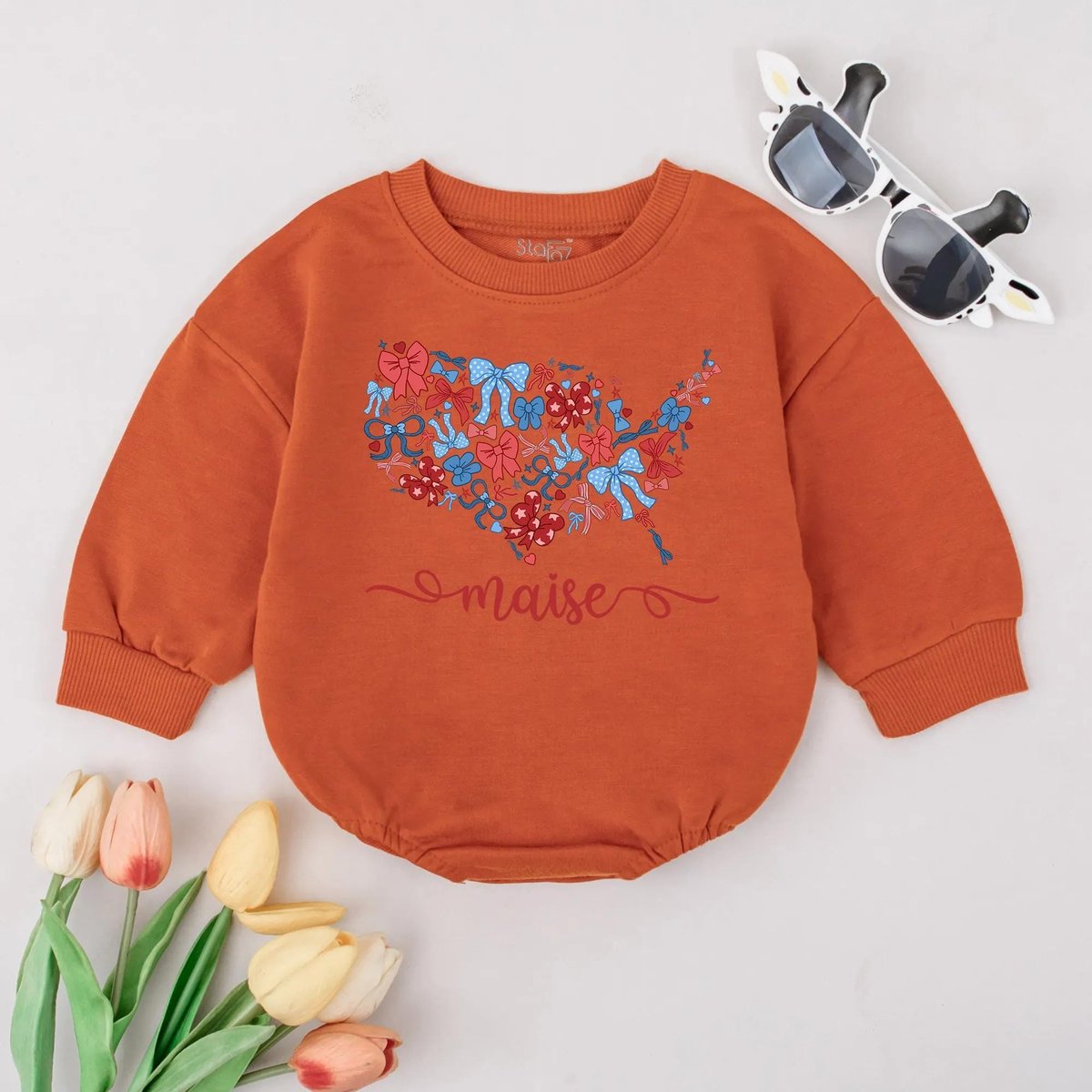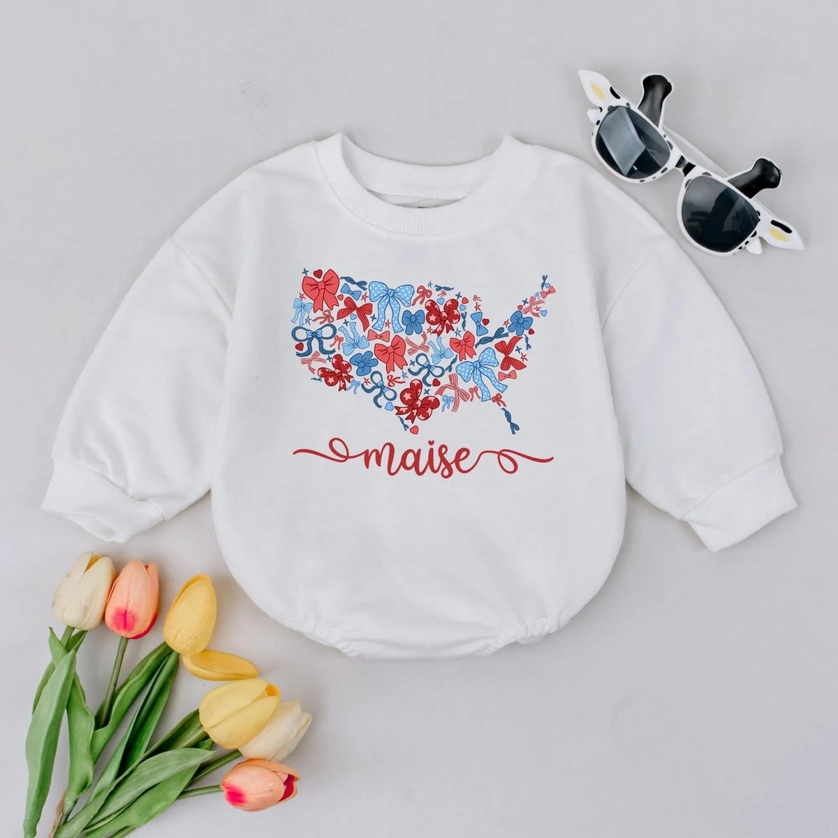 Custom Name USA Baby Romper Personalized Baby Name Map of America Red White Blue Baby Clothes Toddle 431