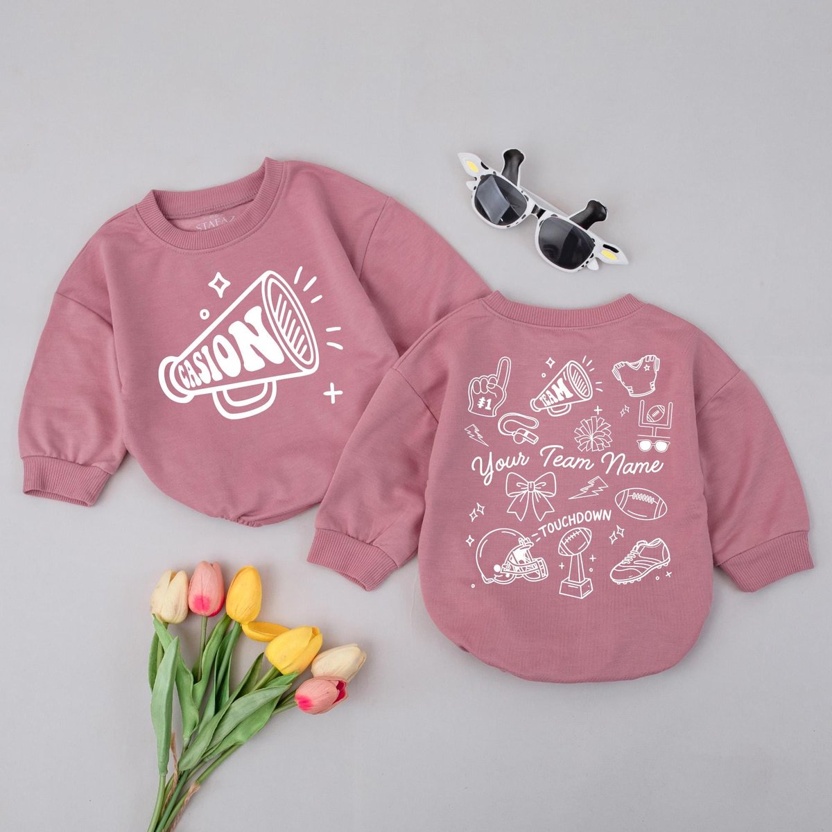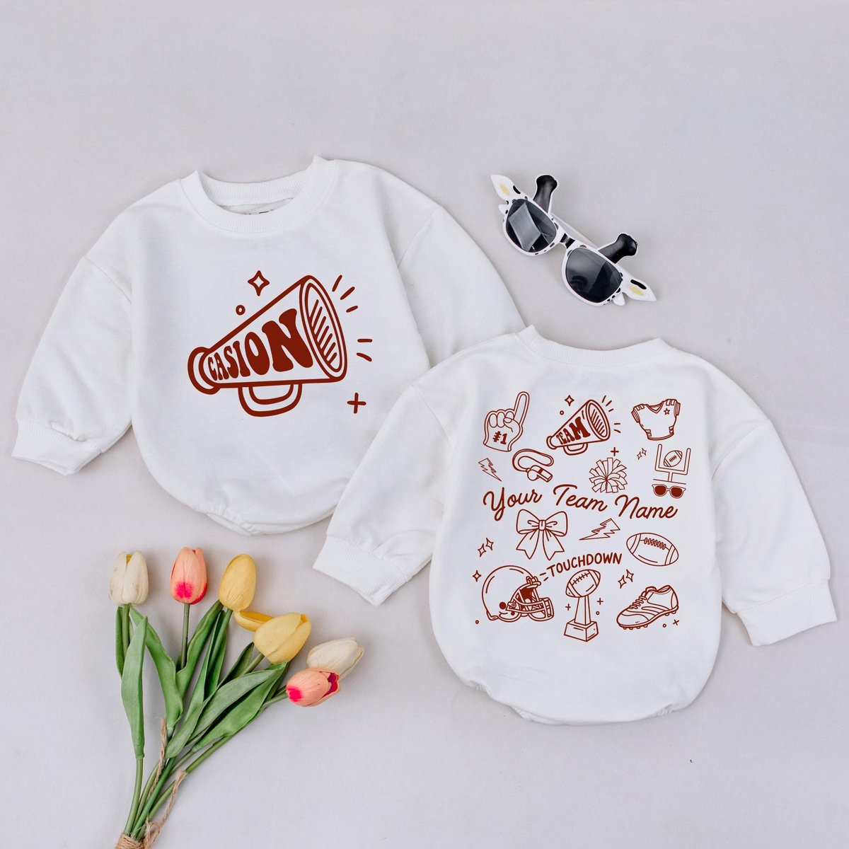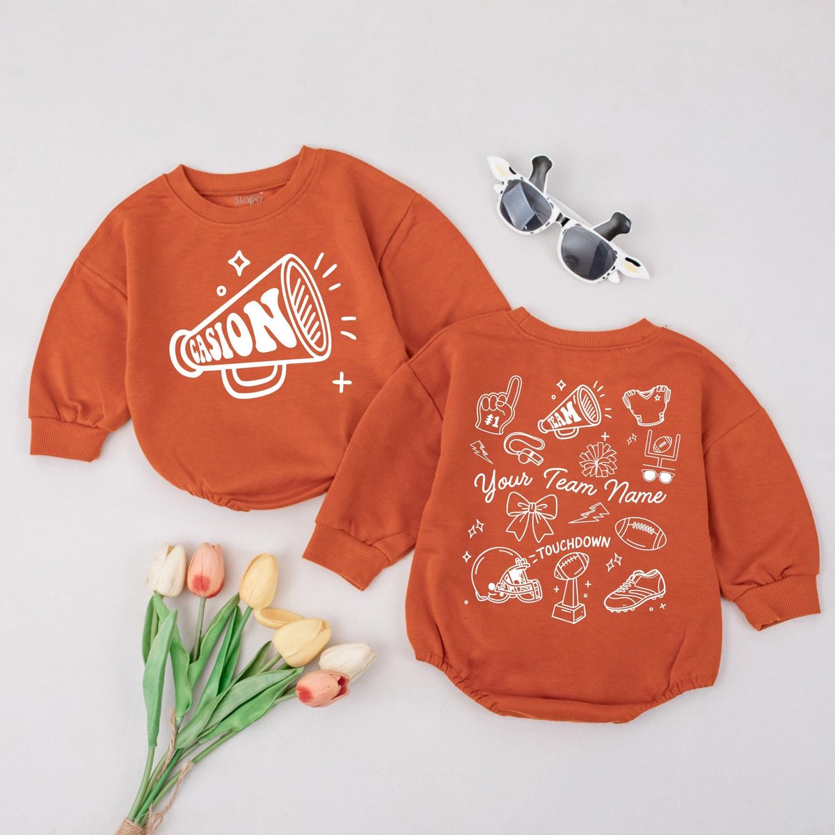Custom Team Name Football Romper Personalized Sport Baby Outfit Touchdown Season Bodysuit Team Spiri 436