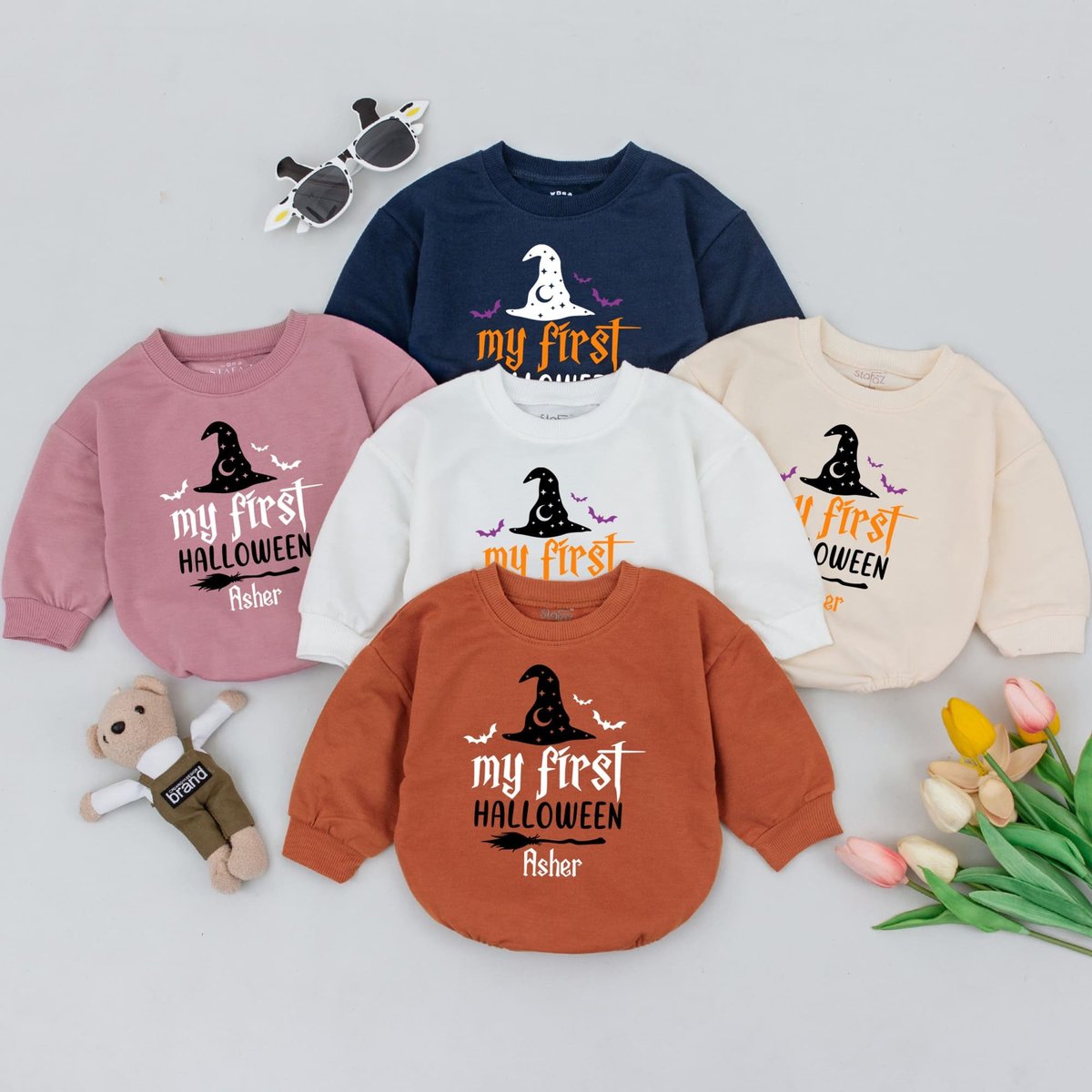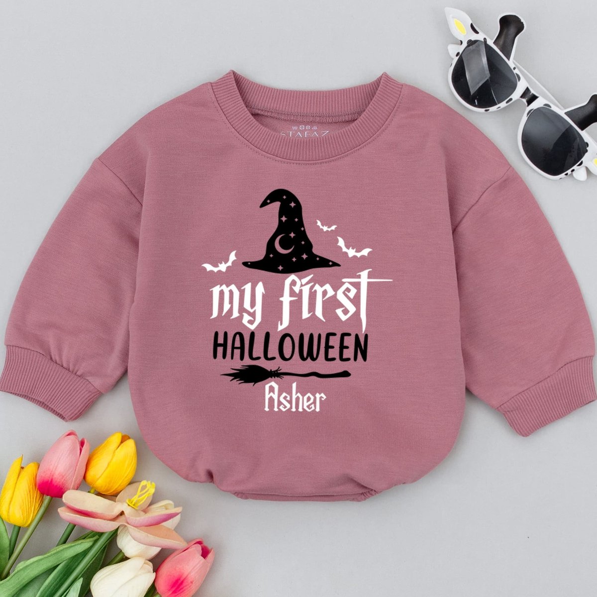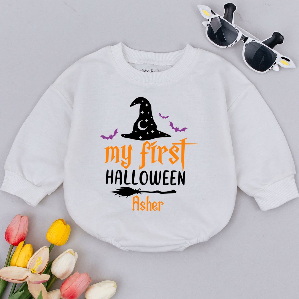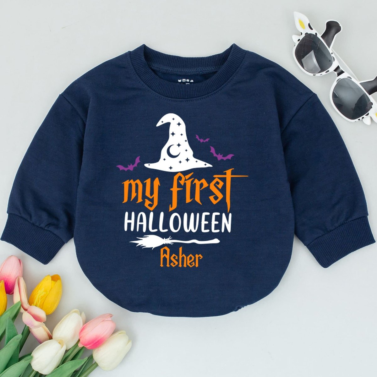 First Halloween Witch Custom Baby Romper Baby Halloween Bodysuit Sweatshirts Halloween Baby Outfit F 175