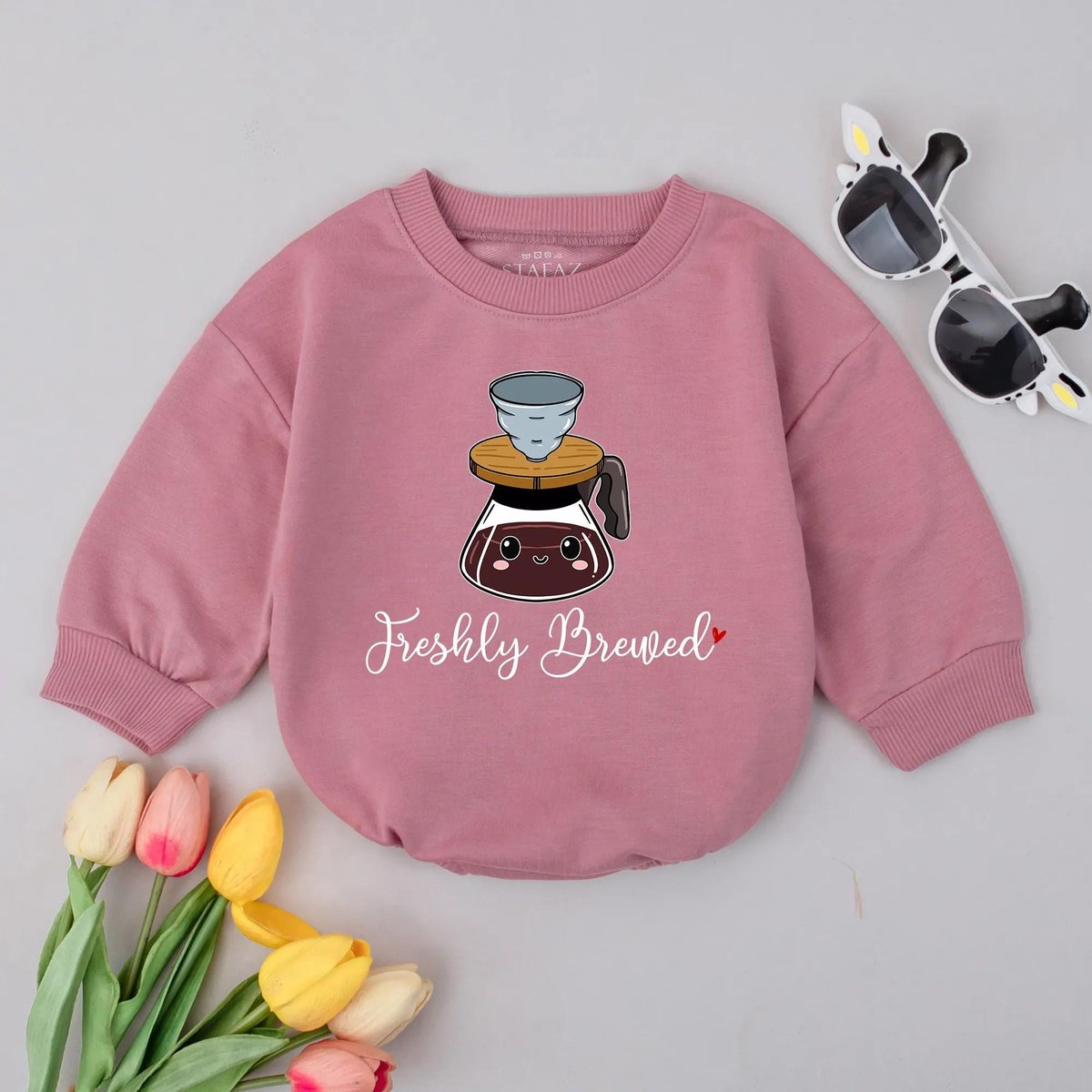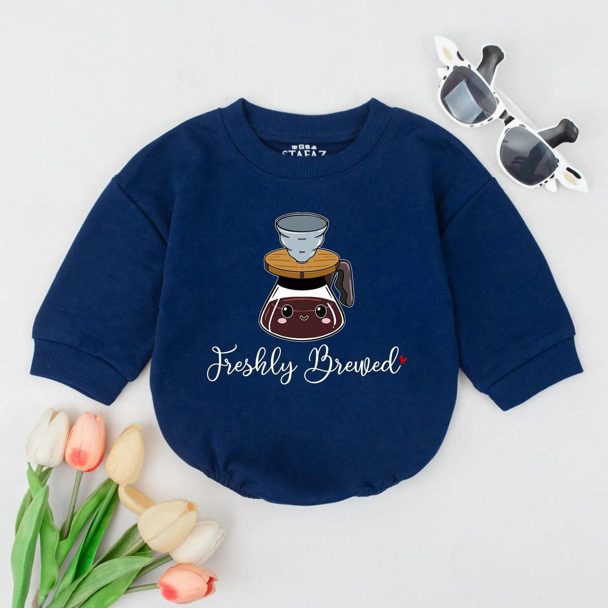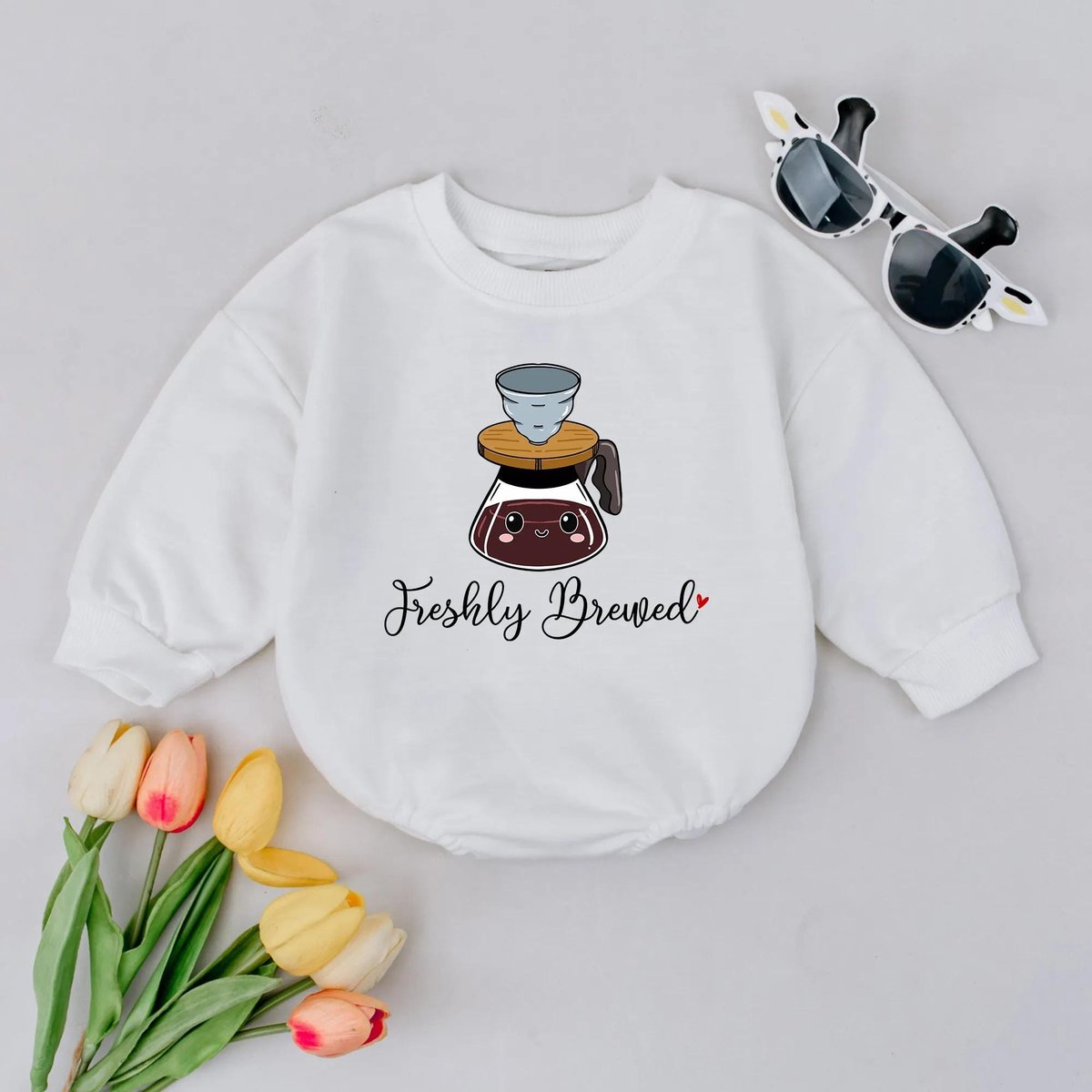 Freshly Brewed T shirt Bubble Romper Funny Coffee Baby Outfit Cute Coffee Pun Newborn Gift Barista B 188