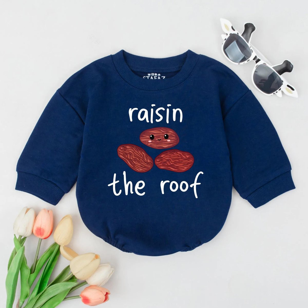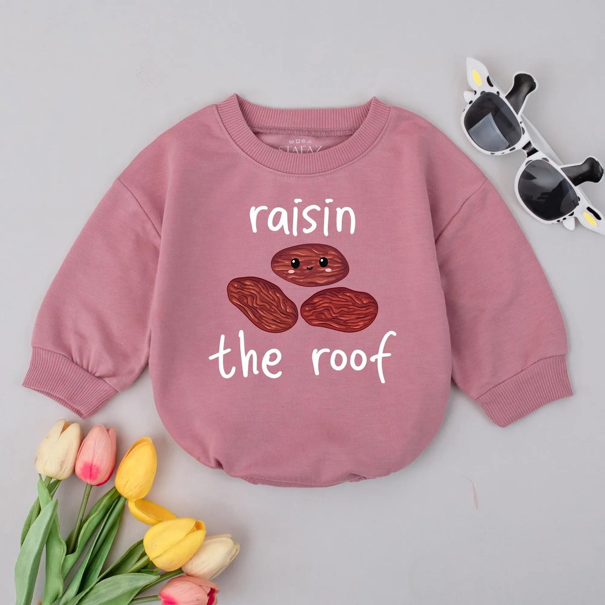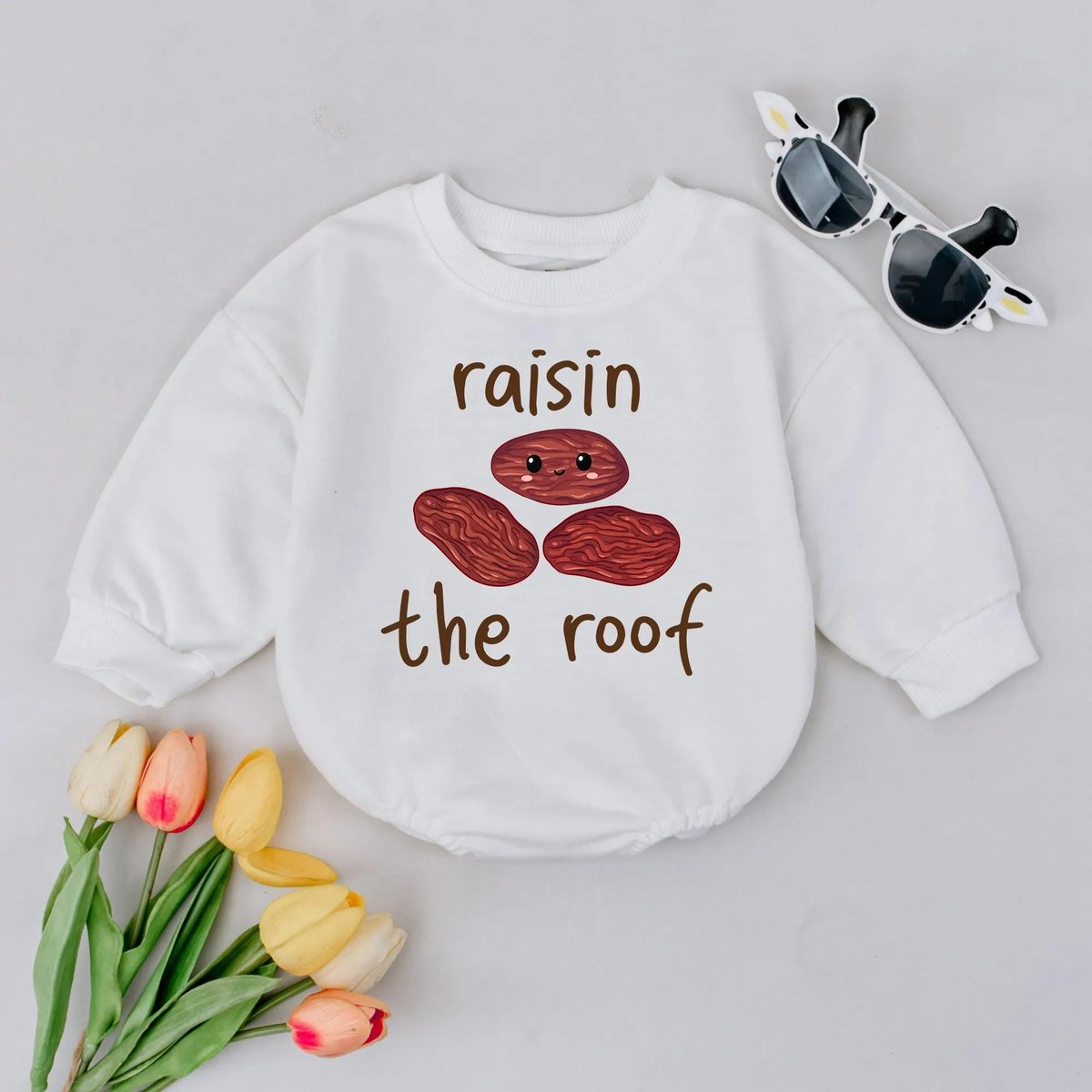 Funny Baby T shirt Bubble Romper Raisin the Roof Outfit Cute Food Pun Baby Clothes Baby Shower Gift 190