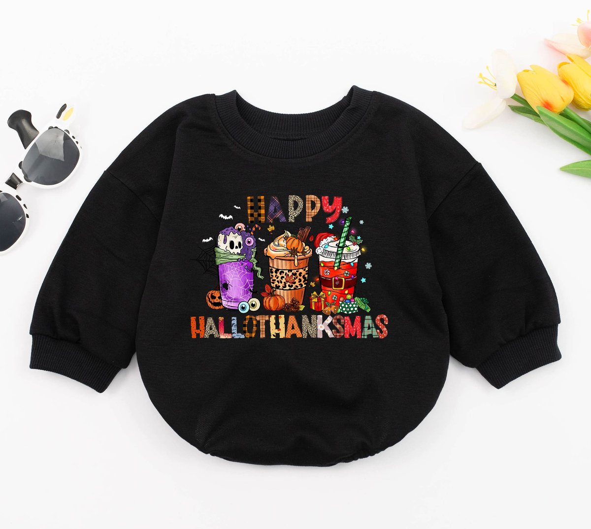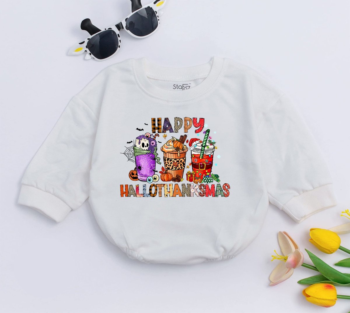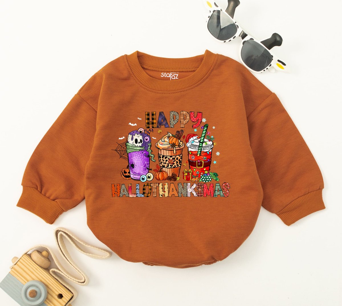 Happy Hallothanksmas Coffee Baby Romper Coffee Outfit Fall Baby Gift Halloween Baby Outfit Christmas 154