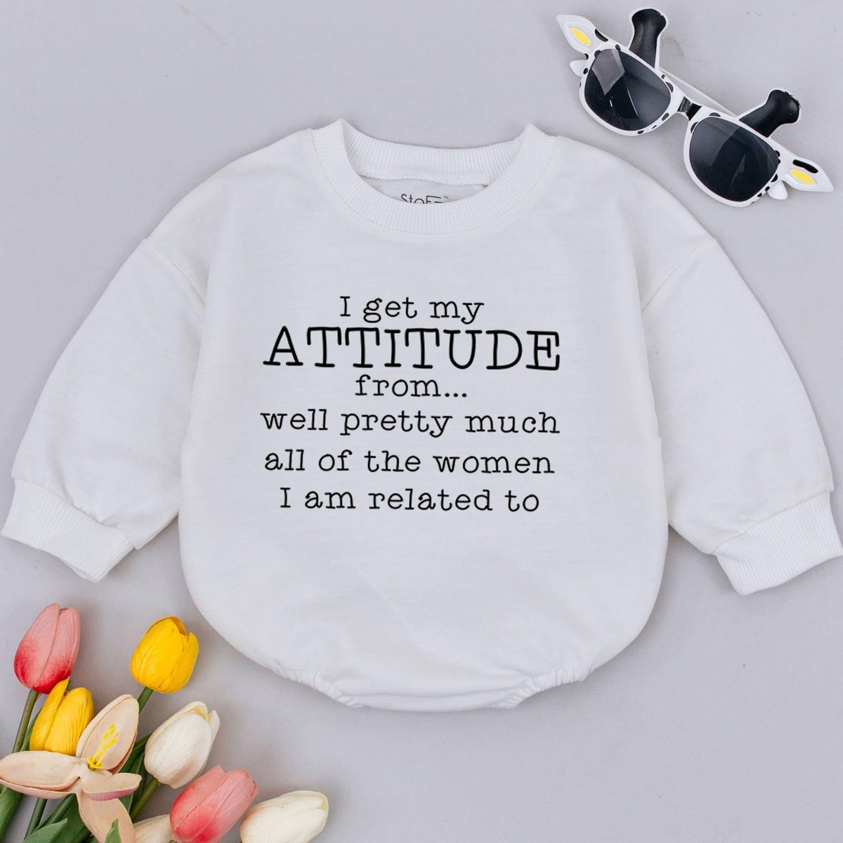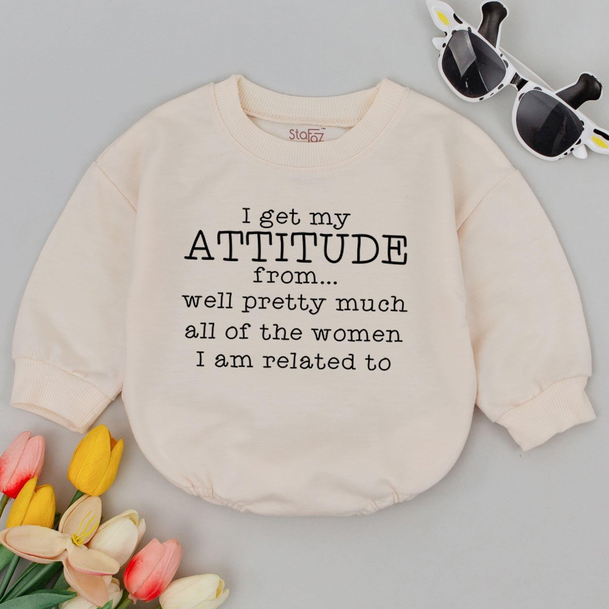 I Get My Attitude From Pretty Much All Of The Women Im Related To Baby Romper Funny Baby Clothes Bab 179